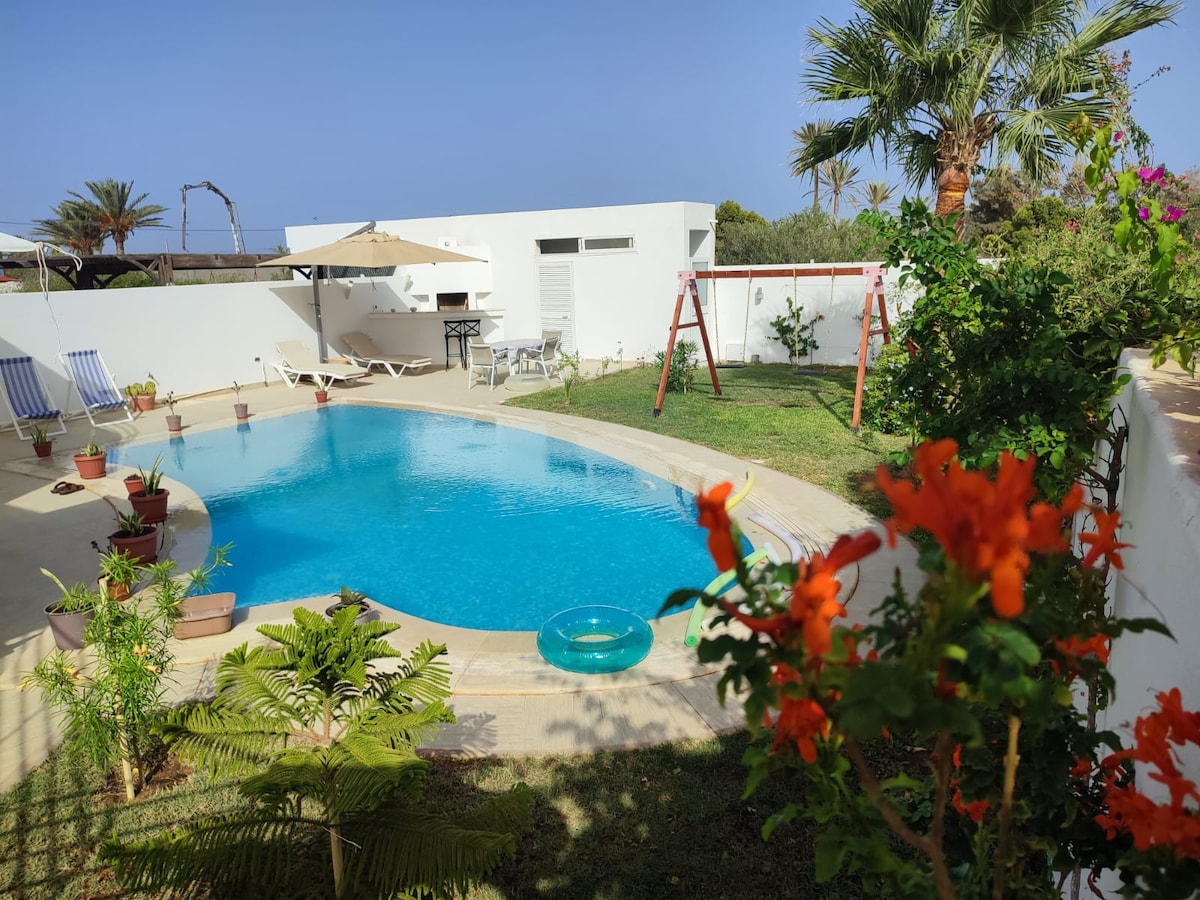 Cartagena, est une villa ou la détente et le plaisir Prennent tout leur sens, venez profiter en famille de sa grande piscine sans vis-à-vis… Mais aussi du calme qui l'entoure et de sa proximité des plages Djerbiennes! La villa se trouve à 7 minutes en voiture du centre-ville de Midoun et 5 minutes en voiture de la plage "Seguia", nous avons une supérette à 300 mètres à pied. Venez bronzer en toute tranquillité....