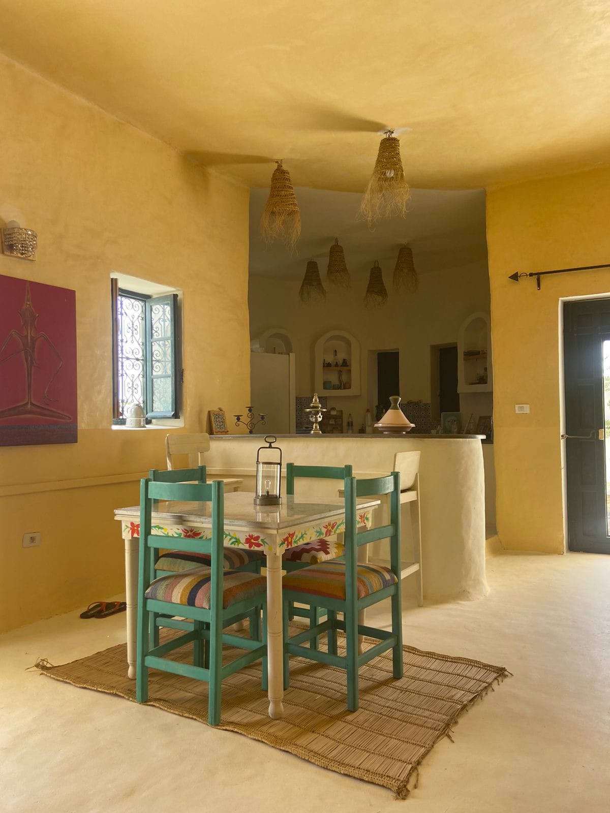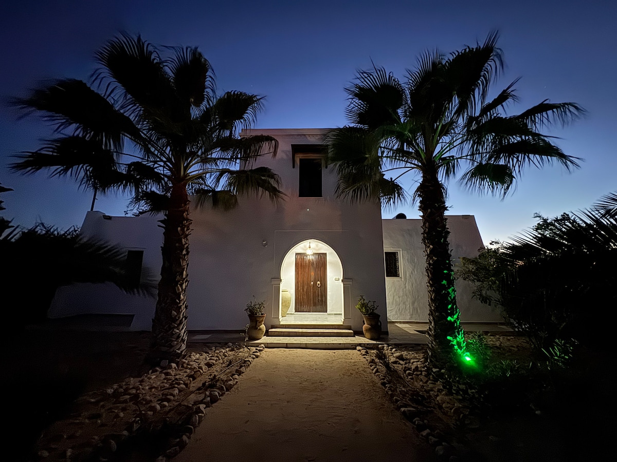 Sublime villa au toit cathédrale, offrant trois suites raffinées, un bureau et une élégante cheminée pour des soirées chaleureuses. Un patio verdoyant et des poteries traditionnelles insufflent un charme authentique djerbien. À l’extérieur, profitez d’une immense piscine, d’un jacuzzi (non chauffé), d’un salon semi-enterré, d’une cuisine d’été, d’une pergola et d’espaces de jeu et détente, le tout dans une atmosphère harmonieuse où se mêlent sérénité, authenticité et art de vivre méditerranéen.