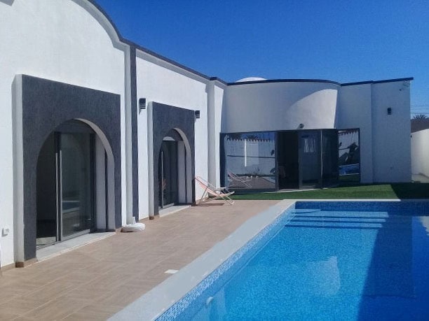 Cette somptueuse villa est située à Djerba. Alliant modernité, élégance et confort, la villa dispose de : - Une grande piscine privée avec douchette - Terrasses aménagées et transats - Des espaces extérieurs pour se détendre en famille ou entre amis - Un salon lumineux et spacieux avec mobilier haut de gamme - Une cuisine entièrement équipée - 3 chambres confortables dont une suite parentale - 3 salles d’eau modernes - Climatisation, Wi-Fi haut débit et tout le confort nécessaire
