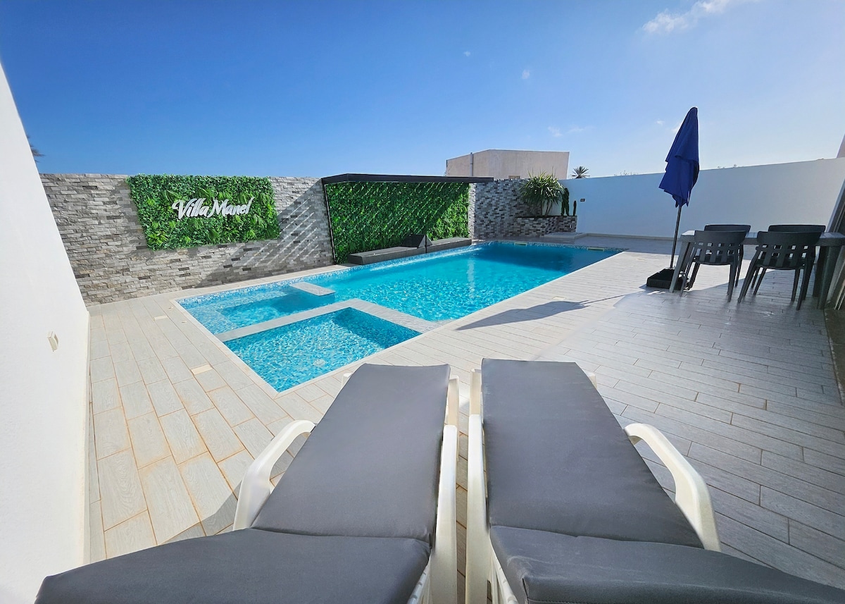 Bienvenue dans notre villa sans vis-à-vis exposée plein sud, dans un endroit calme Elle dispose d'une grande piscine privée, d'une pataugeoire, d'un grand séjour, d'une cuisine équipée, d'un coin pergola pour des moments de détente, d'un barbecue, d'un coin cosy... Des jeux de société sont disponibles pour vous divertir À 200 m de la mosquée, et en voiture : à 2 min de la supérette, à 5 min de la plage et à 15 min du centre-ville de Midoun et de Bourgo Mall La voiture est fortement conseillée