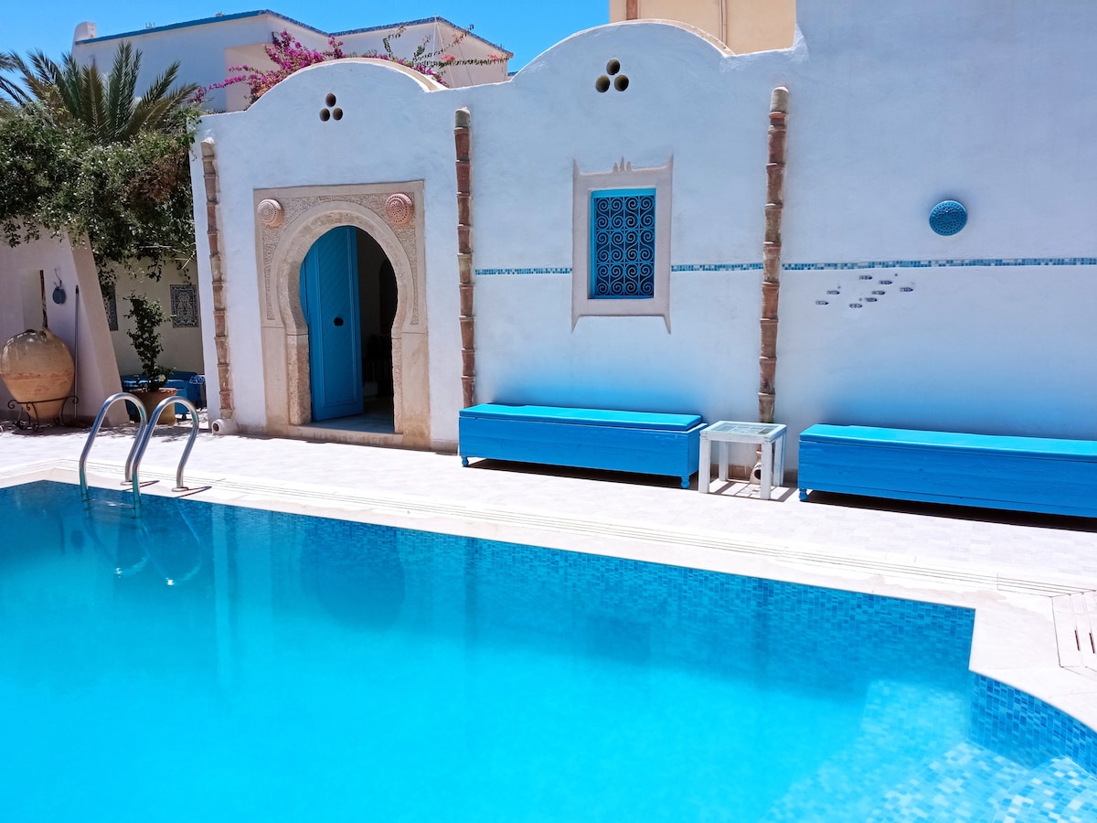Dar Sema est une résidence paisible située à 300m du bord de mer et proche toutes commodités. Dar Sema est un houch traditionnel, rénové, qui comprend 3 appartements indépendants et un privatif (propriétaire ) avec cuisine équipée et tout confort autour d'un patio central avec fontaine. Il offre également des espaces accessibles à tous les hôtes : piscine, jardin, terrasse, barbecue, buanderie, salon collectif,.. Petits déjeuners et repas traditionnels (à partir de 4 personnes) sur réservation.