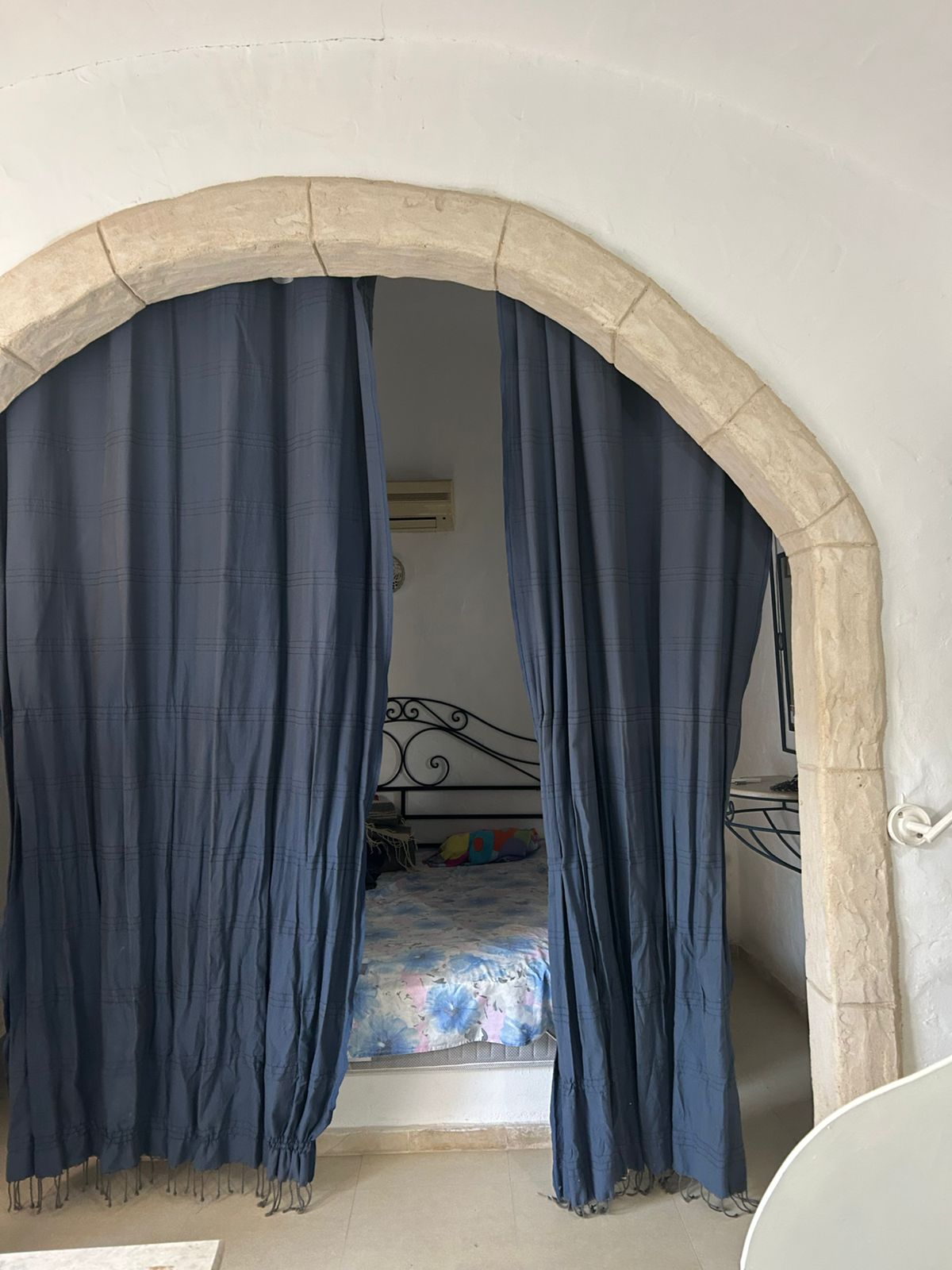 Welcome to our charming one-bedroom apartment, located on the airport road in Houmt Souk, Djerba. The apartment offers one bedroom and a spacious living room with 2 sofas that can host another 2 guests , and is fully equipped with modern amenities, including two air conditioners for ultimate comfort, a TV, and a washing machine, ensuring a pleasant and hassle-free stay. Step outside to enjoy a large, private terrace equipped with a barbecue, ideal for outdoor dining.