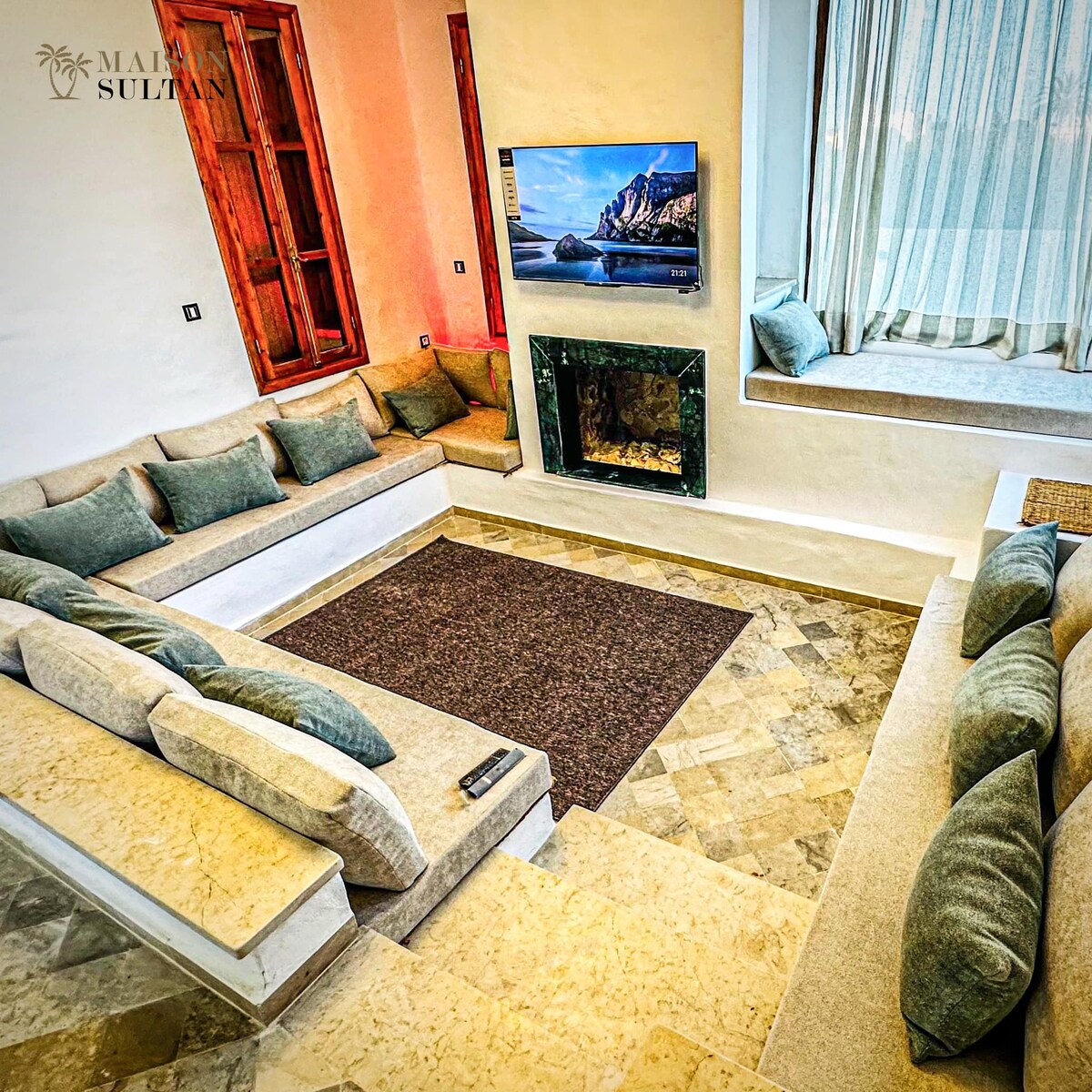 HOUCH | NA est un houch djerbien restauré , idéal pour des vacances en famille ou entre amis. Il propose 5 suites indépendantes, dont 3 grandes suites climatisées avec salon privatif, et 2 suites avec salle de bain privative. Le salon avec son piano, la piscine, la terrasse et le jardin avec barbecue offrent un espace de détente. La cuisine est équipée avec tous les appareils nécessaires. Située à Béni Maaguel, proche des plus belles plages, à 10 min en voiture du centre-ville de Midoun.