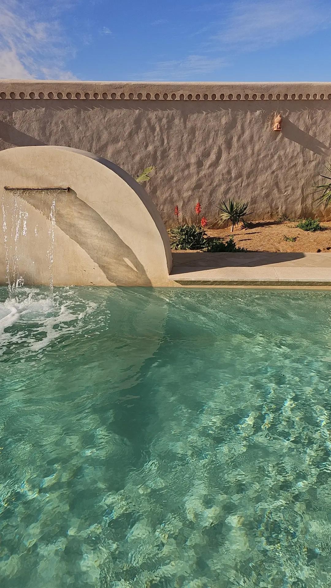 Familles, Couples Mariés ou Amis (non mixte) uniquement GROSSE NOUVEAUTÉ 2026 ! Déjà équipée d'une superbe piscine 9×4, Jacuzzi et pataugeoire, le tout sans aucun vis-à-vis. Venez découvrir notre cascade XXL de 4m de pluie d'eau, du jamais vu à Djerba! Venez vous détendre sur les 4m de matelas nichés entre le mur végétal et la cascade ainsi que la piscine!Relaxation garantie au bord de la piscine! (Photos prisent en Décembre 2025)