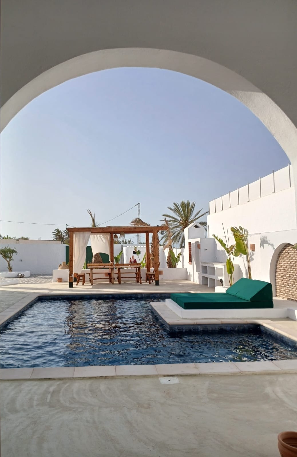 Une maison Djerbienne datant de 1768, restaurée avec passion pour offrir une expérience inoubliable. Plongez dans un monde où le charme historique se marie au confort moderne. Elle abrite quatre suites, chacune imprégnée de son propre caractère. Vous pourrez vous détendre dans la piscine étincelante, vous réunir dans la réception, ou vous échapper dans le vaste jardin. Un coin barbecue vous invite à des soirées sous les étoiles, tandis qu'une terrasse extérieure offre une vue imprenable.