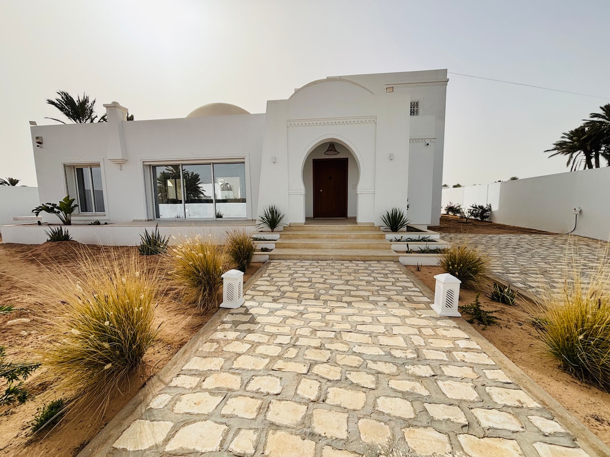 🌴 Bienvenue à Villa Eden – Votre parenthèse de tranquillité sous le soleil de Djerba ✨ Les espaces • 190 m² de confort moderne et raffiné • 3 grandes suites avec literie haut de gamme • 3 salles de bain, 🌿 Le jardin et la piscine • Piscine privée sécurisée • Terrasse avec salon extérieur et transats • Espace barbecue pour vos repas conviviaux 🏡 Équipements • Cuisine entièrement équipée (four, micro-ondes) • Climatisation dans toutes les pièces • Wifi haut débit • Machine à laver