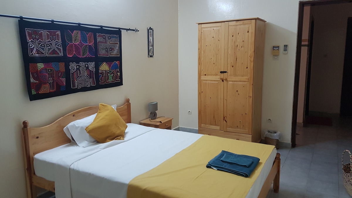 Chambre meublée et climatisée. Factures d'eau et d'électricité inclus. Nettoyage quotidien des lieux. Lingerie incluse. Calme du Lieu, un balcon. Prêt de la Route. Prix le plus bas. Accueil très chaleureux.