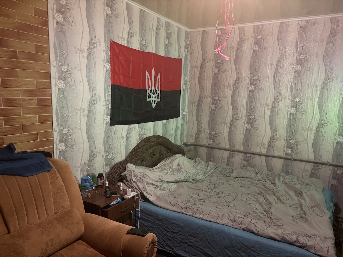 Apartments in a one-storey private house with new renovation and modern home appliances. During power outages we switch on an inverter – it keeps the internet, heating and lighting in the house working. There is also a generator as an additional backup. Private parking for your car. Convenient location almost in the center of Dnipro, with bus and tram stops nearby.