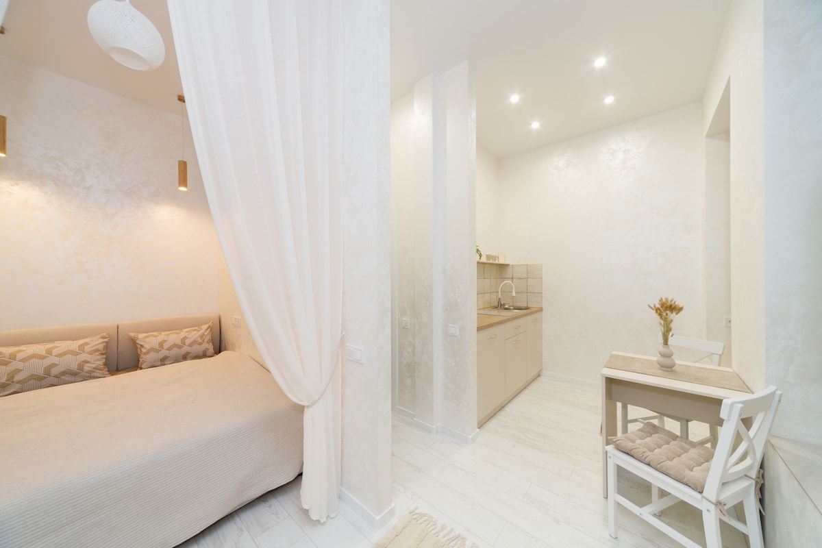 Apartments in a one-storey private house with new renovation and modern home appliances. During power outages we switch on an inverter – it keeps the internet, heating and lighting in the house working. There is also a generator as an additional backup. Private parking for your car. Convenient location almost in the center of Dnipro, with bus and tram stops nearby.