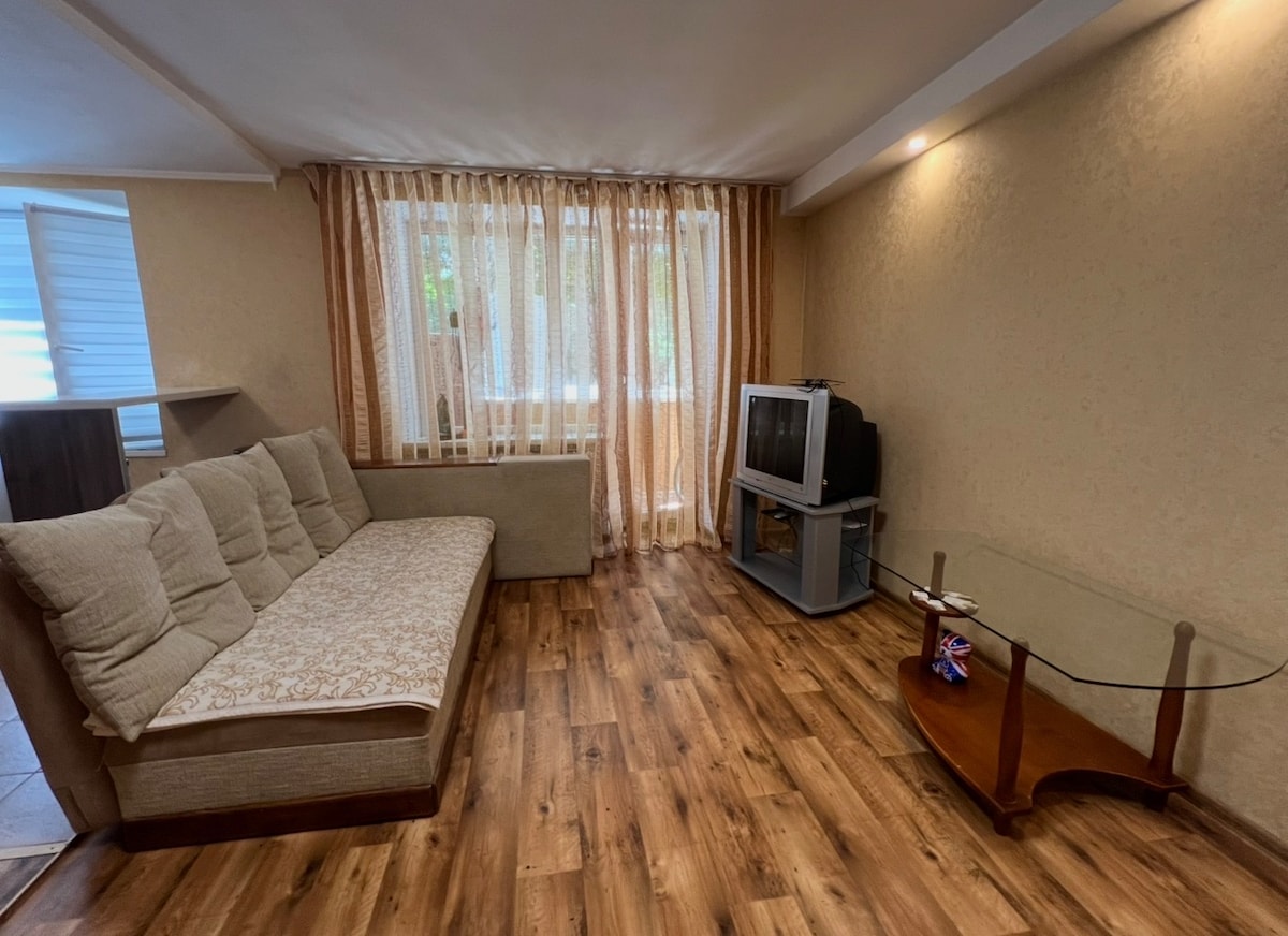 Затишна, чиста, з новим ремонтом. – До 4 лікарні, госпіталю — 1,5 км – До авто та залізничного вокзалу — 7 км – Поруч АТБ, Сільпо, Єва, базар, піцерії, аптеки, банк – Трамвай №5, маршрутки №86, №39 – 5-й поверх (останній, без ліфта) – Панорамне вікно – Двоспальне ліжко – Розкладний диван (3 спальних місця) - Кондиціонер – Гаряча вода – Смарт-ТВ, Wi-Fi – Ванна, прально-сушильна машина – Мікрохвильова піч, електрочайник, холодильник - фен, праска – Посуд, чай, цукор – Свіжа постіль та рушники