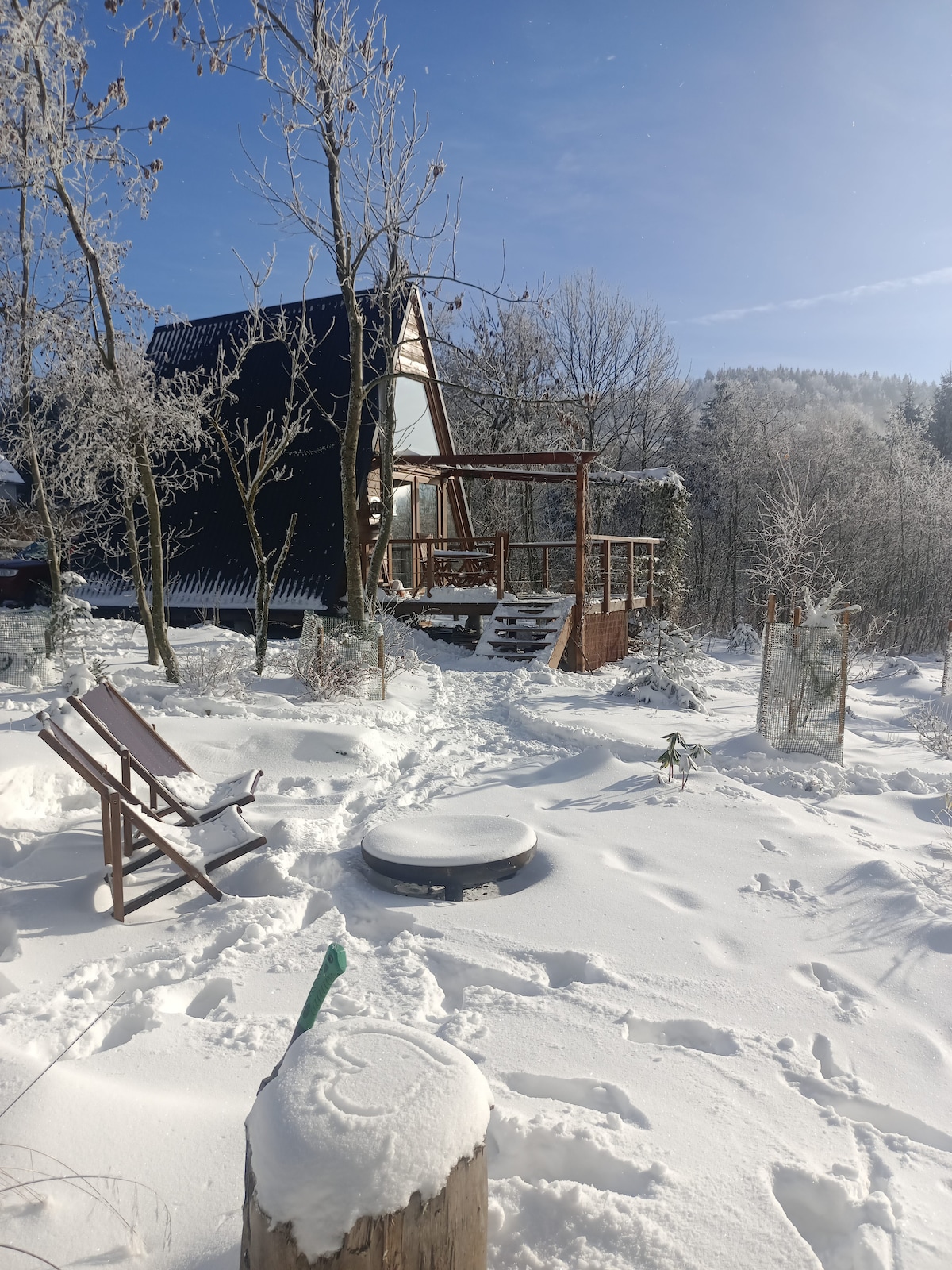 Our 3 holiday mountain lodges are directly located in the giant mountains of poland - in the middle of 2 ski areas Szklarska Poreba & Karpacz. Perfect for hiking, wintersports & nature fans. For that our lodges are perfect prepared with ski wardrobe, shoe dryer, infrared Sauna, hottub, Terrace & private parking space. Closed to us is a very famous waterfall where it is alloud to go swimming. The interior is a very cosy unique design with all modern features - WIFI, smart TV, modern kitchen, ...