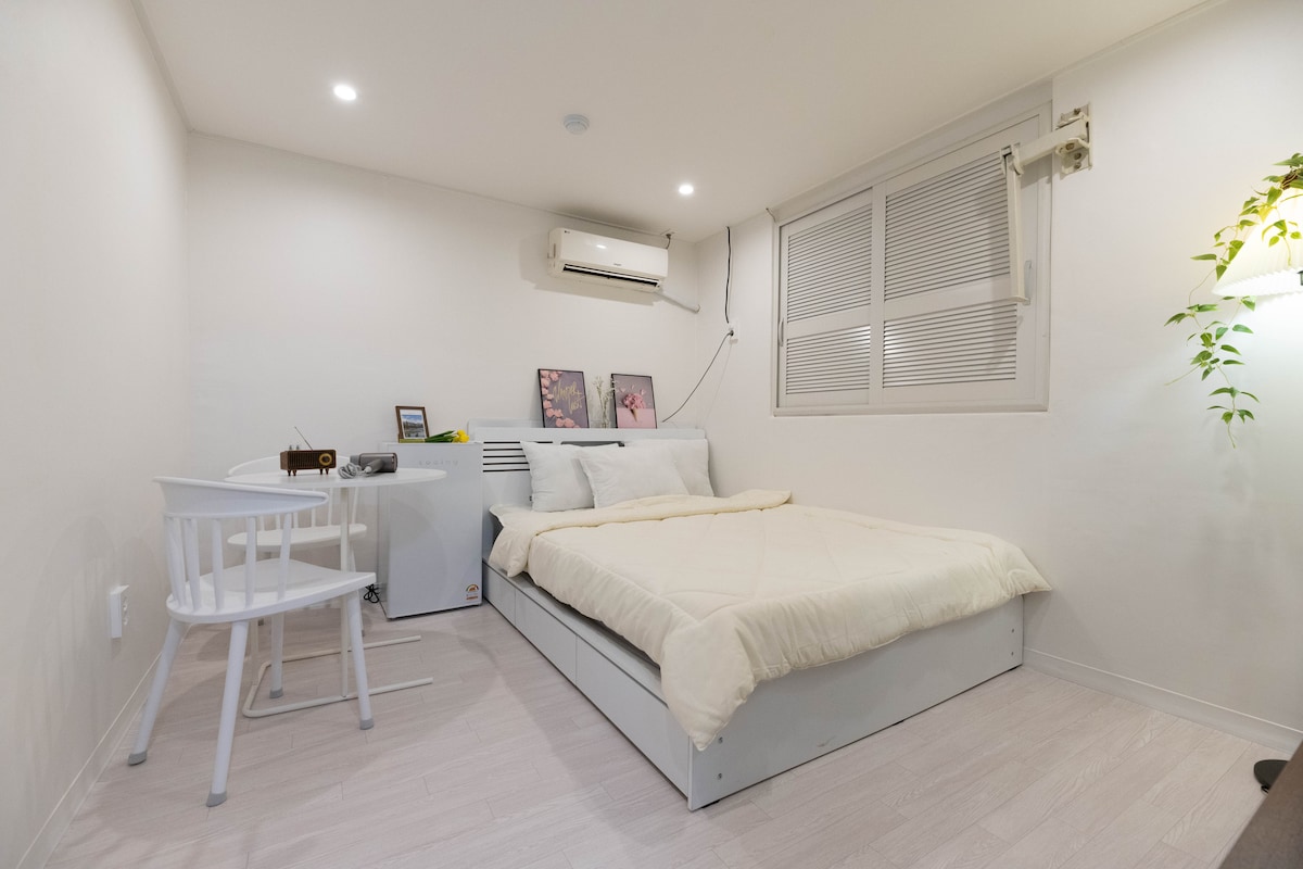 [NEW OPEN] ● STAY SAI 스테이사이 [1인실] -. 최대인원 : 1명 -. 혼자 머물기에 깔끔하고 아늑한 공간이에요. (개별 화장실 있음) -. 엘레베이터가 없으며 1인실룸은 1~2층에 랜덤 배정됩니다:) -. 핫한 광장시장 바로 앞, 지하철 종로5가역에서 도보 3분거리에 위치해요. -. 광장시장에서 맛있는 음식을 포장해와서 예쁜 공용부 공간에서 드실수 있어요. -. 숙소 이용객에게는 6가지 종류의 한국라면을 무료로 제공해요:) -. 간단한 조리가 가능한 예쁜 공용주방이 마련되어있어요:) -. 구비 가전 : 세탁기 / 건조기 / 냉장고 / 전자레인지/ 토스터기 / 조리도구 / 주방도구 / 각방의 에어컨난방시설 ● 호텔 베딩을 사용, 매번 살균 세탁된 깨끗한 침구를 제공해요. ● 매월 전문업체를 통한 정기 방역을 하는 안심 숙소에요:) ● 호스트가 직접 청소 관리를 하는 청결한 공간이에요.