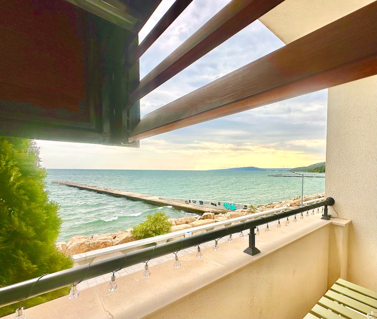 The appartament is located 25m away from the beach with a full sea view., 15m from two different restaurants and 10 meters from a fast food place. It has 2 balconies with a beach view; fully equipped kitchen; living room with a sofa and working space; big bedroom; Smart TV with Youtube and Netflix; WIFI+Smart AC. Great place to stay for a week. Quiet street and most importantly - safe for kids. Also you can bring your dog - as long as its well trained and don`t do damage on the property.