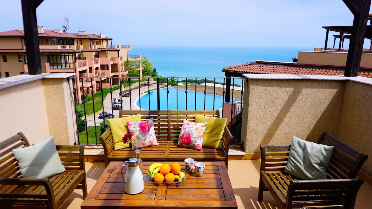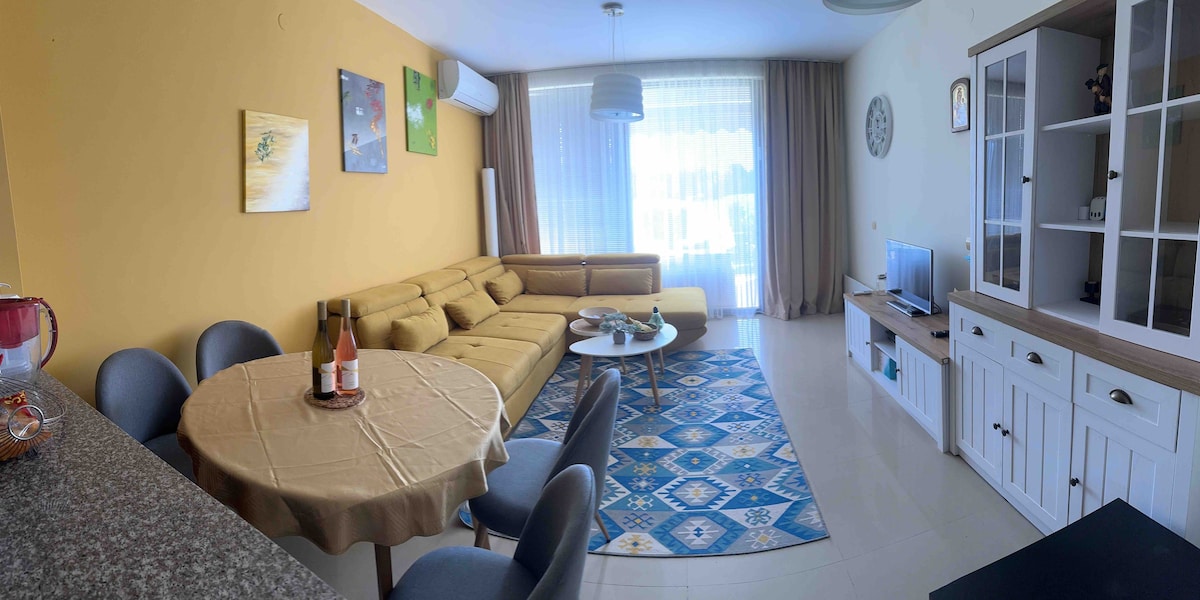 Apartment Poemia is located in front of the beach and just next to the best restaurants, on the promenade of Balchik- the coziest and most romantic Bulgarian town, named the White town. It has a fully equipped kitchen, one bedroom with a queen bed, and a comfortable terrace- everything you need for a perfect holiday!