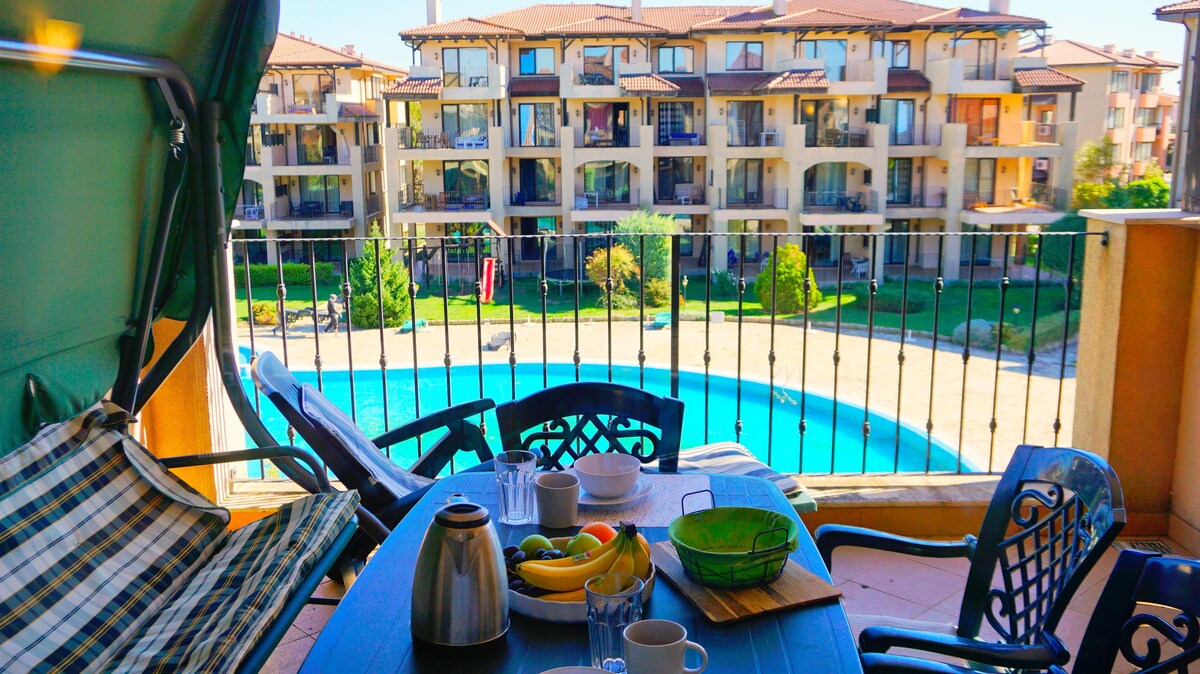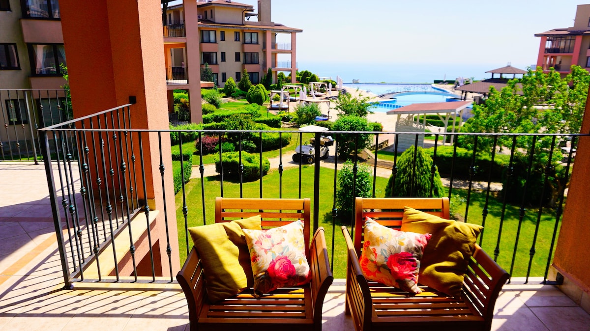 Стилен двустаен апартамент (70 кв.м.) в Лайтхаус Голф с панорамна гледка към голф игрището. Разположен в сърцето на Черноморското голф крайбрежие, само на 10 минути от Балчик. Апартаментът предлага модерно обзавеждане, оборудвана кухня, три балкона и климатик. Комплексът предлага безплатно басейн и шезлонги, а срещу допълнително заплащане може да ползвате и СПА, фитнес и частен плаж . Идеален за почивка, семейства с деца и голф любители. Близо до летище Варна, Албена и Балчик.