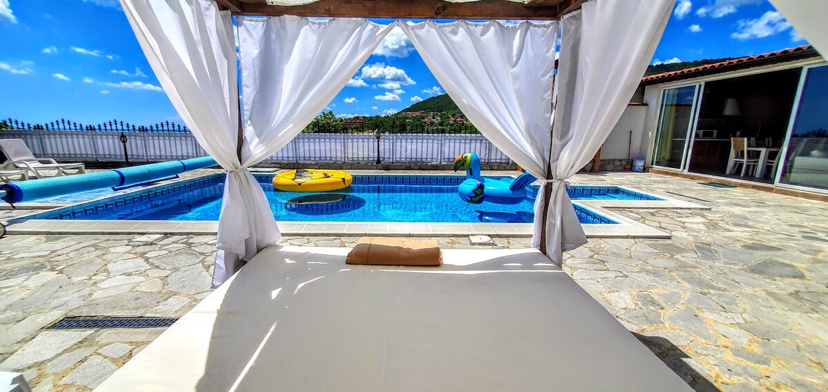 Villa Aura is a design 3 bedroom villa in the village of Rogachevo with a magnificent view to the sea and the nature reserve Baltata near Albena. It is a excellent starting point either to be on the sandy beaches of Kranevo and Albena, or to visit coast gems such as Cape Kaliakra or the town of Balchik. The villa is suited best for 6 adults and 4 children. ***New outdoor jacuzzi zone - season 2026***