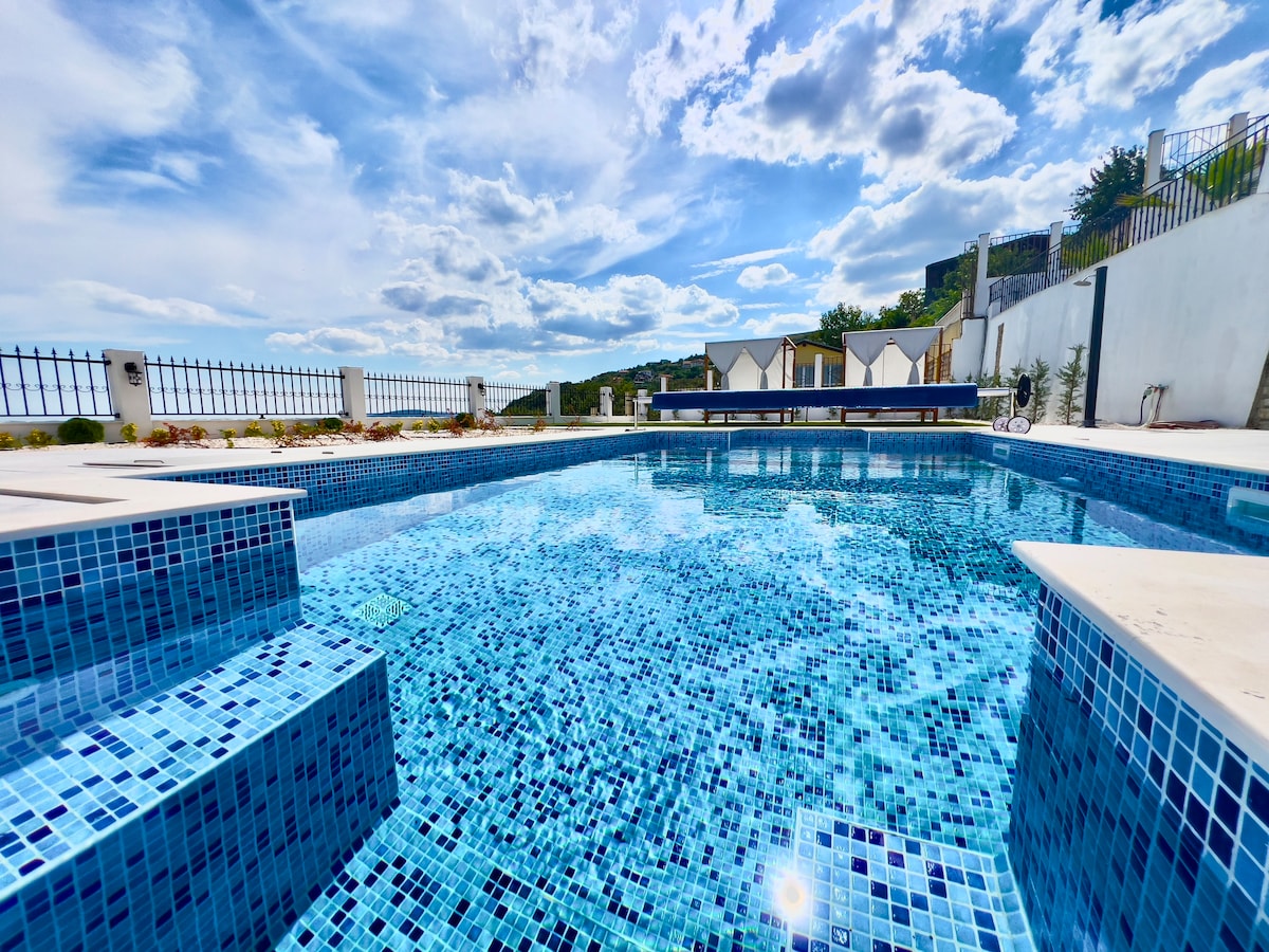 Welcome to the White Pearl boutique villa! Here you can enjoy a perfect sea panorama from every point of the property, amidst silence, tranquility and picturesque nature! The villa has two bedrooms with large and comfortable double beds, luxury mattresses, two sofa beds. Total capacity 4+2. Two bathrooms, one of which is a double bathroom with two showers. Living room on two levels with a fully equipped kitchen. Barbecue area, Heated pool with jacuzzi, spacious yard and garage for two cars.