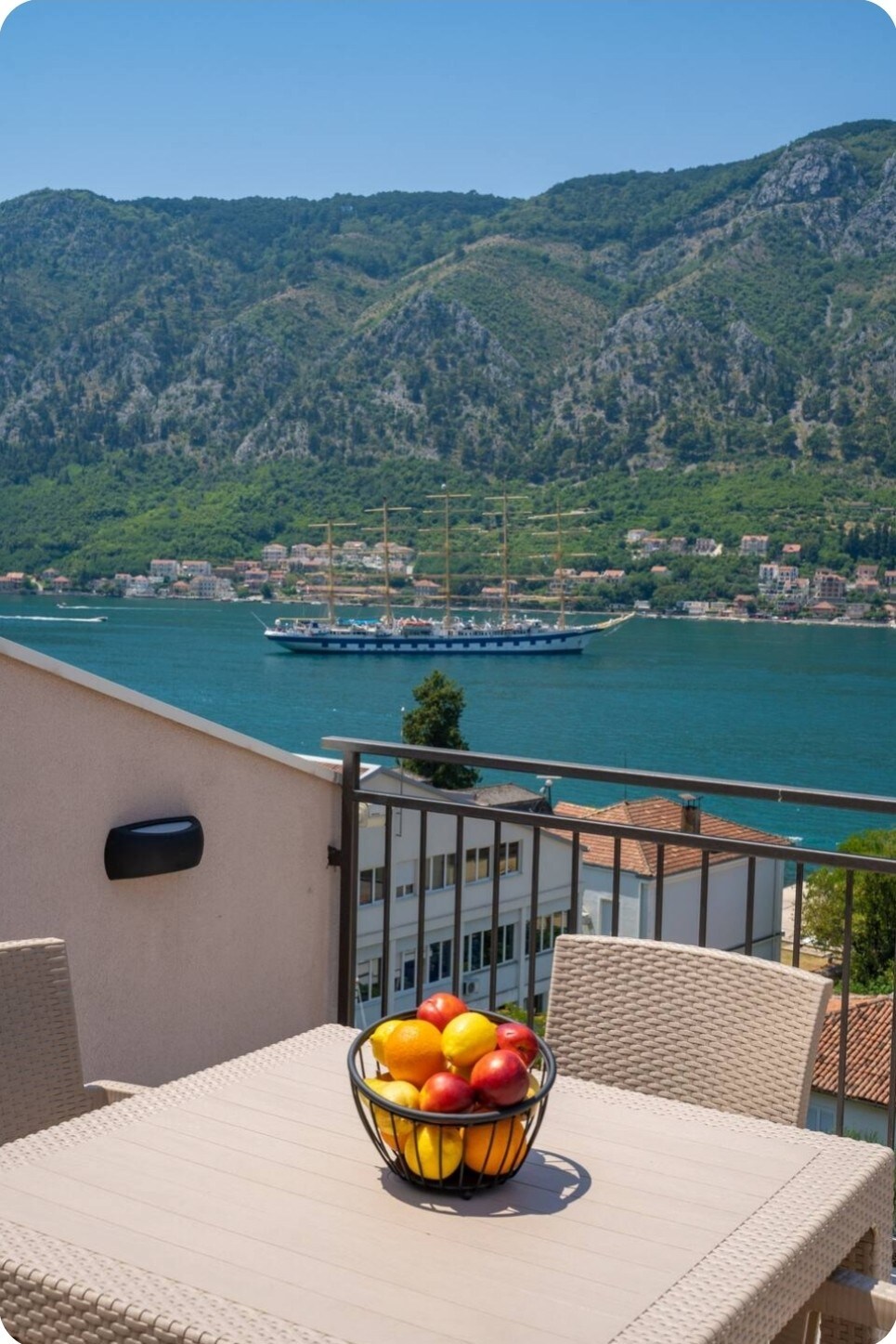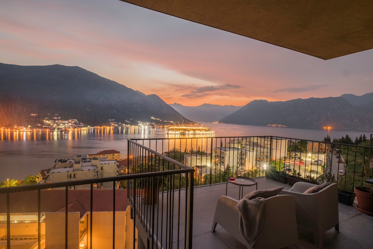 If you want to enjoy the spectacular view of the Boka Bay while you drink your morning coffee or a glass of white wine watching the best sunset on your own terrace, this is the perfect place for you. Just 5 minute walk from the sea promenade, and only 4 km from Old Town Kotor - the perfect location to enjoy the best Kotor has to offer.