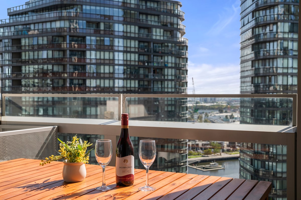 Premium apartment on the 21st floor with spectacular panoramic views of Melbourne CBD,Yarra River and Docklands Harbour.Located within the Free Tram Zone, and walking distance to the CBD and the Marvel Stadium. Fully equipped,it's ideal for holidays in style or business trips * Undercover Parking * Free WIFI * Heated Pool and Hot Tub * Gym * Library * TV 65" * Aircon in lounge area and main bedroom.