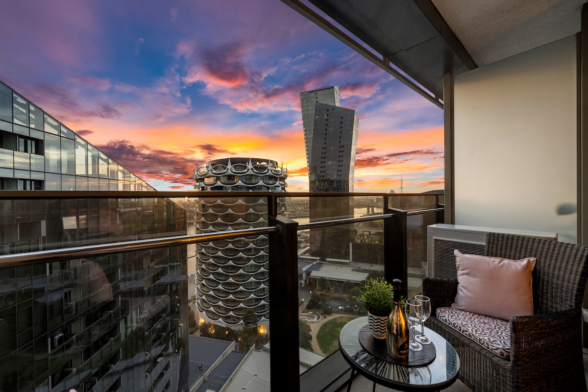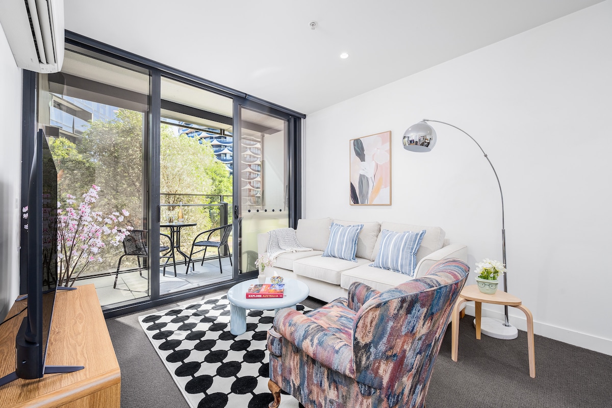 Experience the best of Melbourne! Our place is cute, cosy, and conveniently located. Watch rowers on the Yarra River, work out in our gym, and relax in the pool and spa. Explore the Yarra toe path, hop on the free tram for city shopping, and return to our calm neighborhood. No TV—just deep couches for coffee, conversation, or a good book. Walk to marina restaurants or catch events at Marvel Stadium. End your day on our balcony, surrounded by city lights.