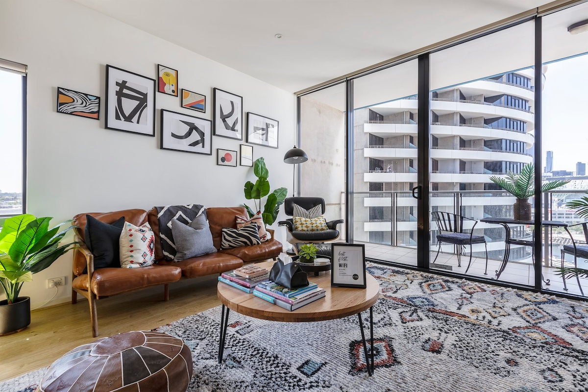A tranquil space to call home while you're in Melbourne, your own 2 bedroom 2 bathroom apartment (64sqm Internal + 6sqm Balcony). Designed with sanctuary in mind simple modern and minimalistic. Enjoy the amazing views of the city skyline. This is a family friendly space. Located next to Southern cross station and the sky bus terminal. Situated in the free tram zone - everything Melbourne has to offer is at your finger tips - close to cheap eats, classy restaurants and hip cafe's.