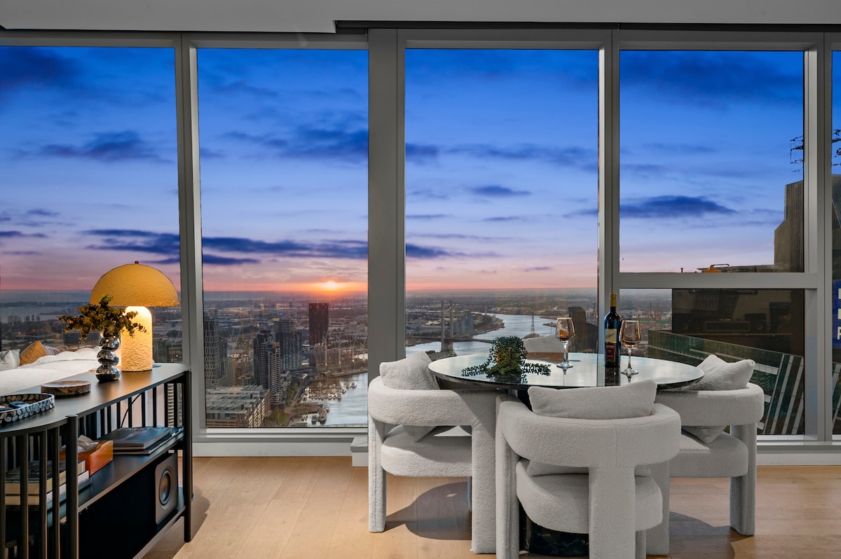 Experience the epitome of luxury living in this stunning 65m2 apartment, perfectly situated in the Paris end of Melbourne. Enjoy breathtaking city views from the comfort of your private residence, complete with a spacious lounge room featuring a leather chaise lounge and 3-seat leather couch. The modern dining table seats two, perfect for intimate gatherings. Enjoy a walk in marble shower in closure and Bathroom with LED makeup lighting. Pool is Heated all year round and the best in Melbourne.