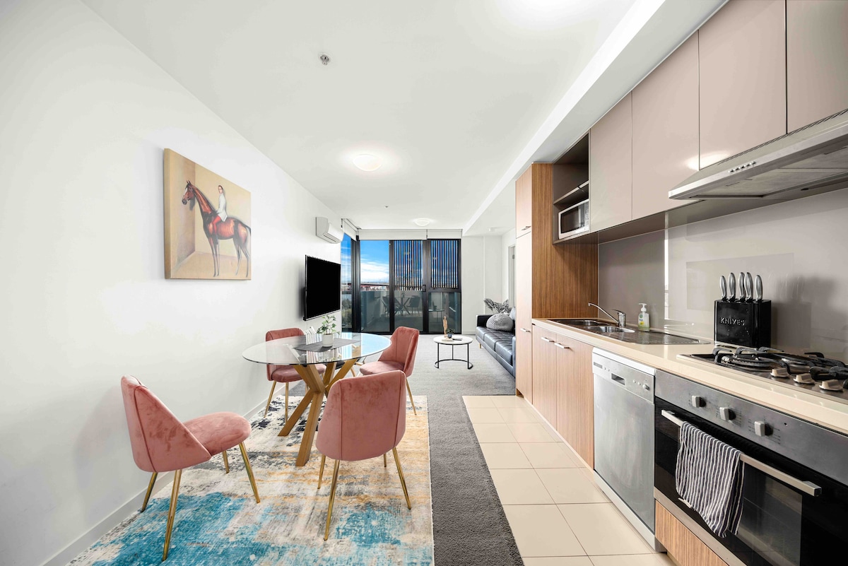 This modern and minimalistic unit provides a calm and spacious environment. The bathrooms are roomy and feature relaxing rain showers, along with complimentary shampoo and body wash. We are just minutes from Melbourne CBD, located right next to Marvel Stadium. Enjoy easy access to complimentary trams at your doorstep. Gym and Pool located in the next building, accessible with your house keys, you’ll find a fully equipped gym and a heated outdoor pool for your enjoyment.