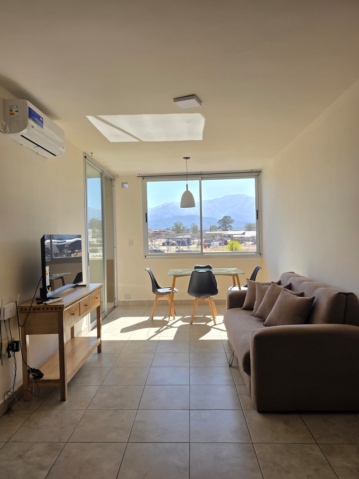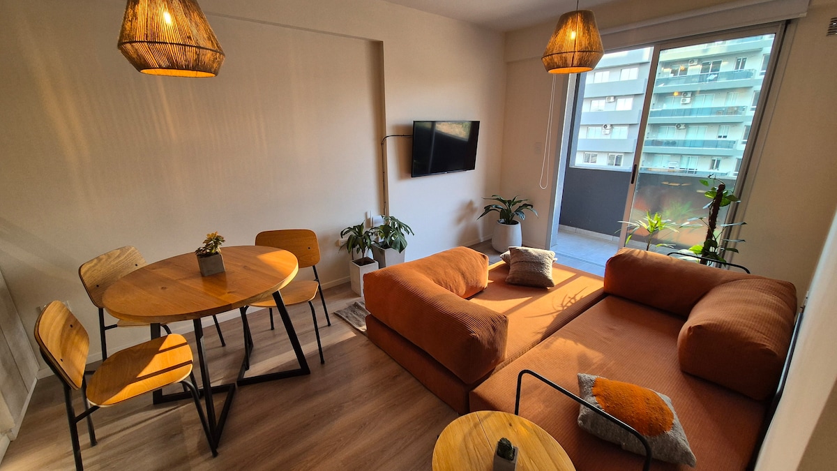 Imaginá despertarte mirando los cerros y el cielo azul. El departamento es amplio y luminoso, donde duermen cómodamente hasta 3 personas con una cama y un sofá cama. Equipado con TV, Wifi, aire acondicionado y un balcón. Si tenés cualquier tipo de dudas sobre el depa o servicios, consúltame antes de reservar ya que todos tenemos dudas al momento de preparar un viaje.😄