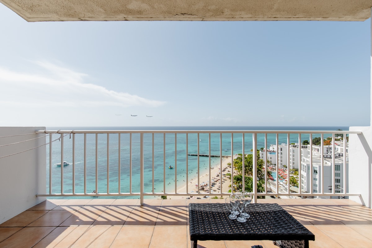 PLEASE READ DESCRIPTION BEFORE BOOKING! With only 5 mins from the Montego Bay airport & 20mins walk /5 mins by car to the Hip Strip the apartment is nestled in a quiet and secure neighborhood. Get ready to wake up to a breathtaking ocean view from your apartment. The apartment is palatial, cool and central to all major attractions. Enjoy the roof top pool overlooking the ocean and watch as the planes land at the airport.