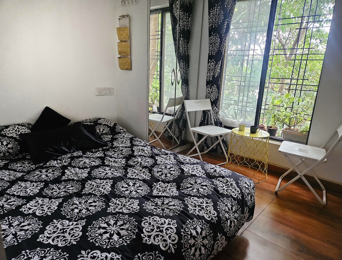 Your private unit in the city overlooks greenery. Watch the symphony of sunlight dancing through the branches to birdsong Let your worldly thoughts dissolve in the reading nook. Proximity to major tech parks and breweries in Bellandur, Sarjapur rd, HSR and E-city. Yet the suburbian locale allows for peace away from the hustle of Bangalore. Swaying trees act as a natural umbrella, keeping the room cool and eco-friendly. Couple friendly Wifi 24hr power Parking