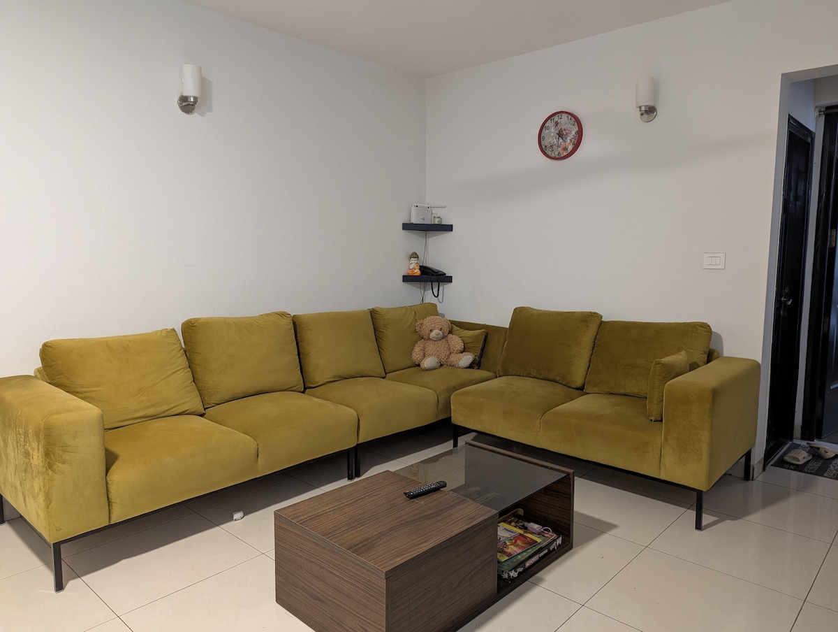 You with your family and friends will be close to everything when you stay at this centrally-located place like Mall, INOX Cinema, SuperMarket, Veg, Non-Veg Restaurant inside Quality Saloon, Gym, Walking, Swimming Pool in terrace inside the campus, private car parking. Access to cabs, and trains,40 minutes to Bangalore airport. Close to ITPL, Sigma Tech Park many other tech parks in Whitefield are within reach.