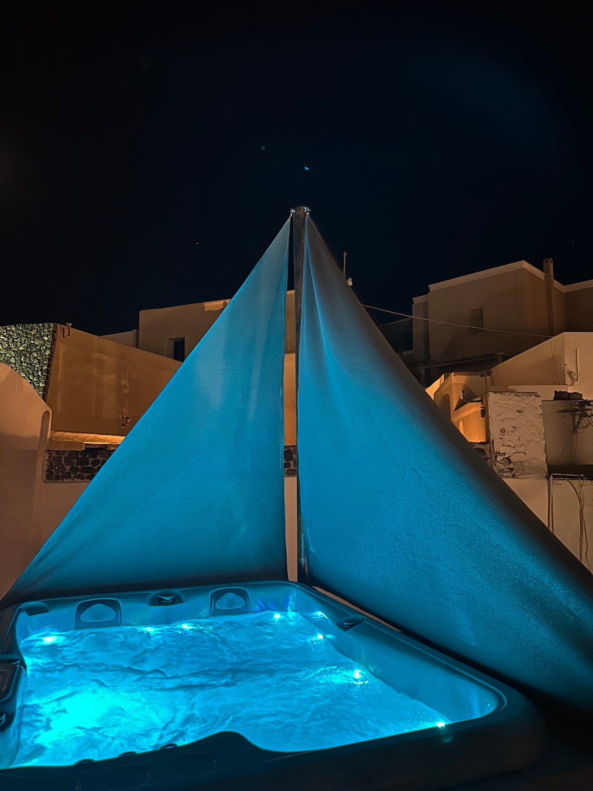 Traditional troglodyte house at ‘the top’ of Pyrgos's medieval village, renovated and furnished in a cool bohemian style with amazing panoramic views. Every detail has been thought through. Prime location, a hidden gem in the village. Steps away from restaurants, bistros, local shops, cobbled streets and blue and white domed churches. The house is spacious, stylish and unique. A luxury jacuzzi is situated in the walled courtyard allowing you complete privacy and a sense of calm.