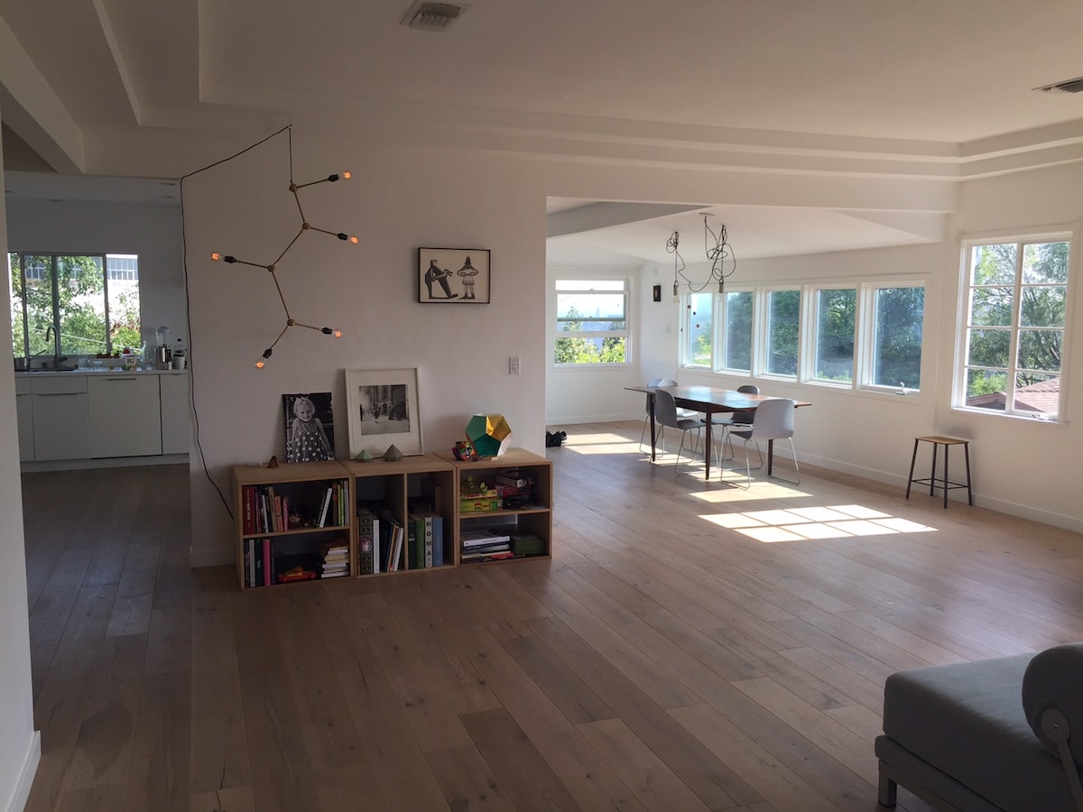 Welcome to our sunny guest suite in the heart of Silver Lake. Perched on a quiet hilltop one block from the hippest stretch of Sunset Blvd, you can walk to the reservoir or Echo Park Lake, experience the nightlife, or best yet, stay in with the sunset views and feel like you’re in a world of your own.