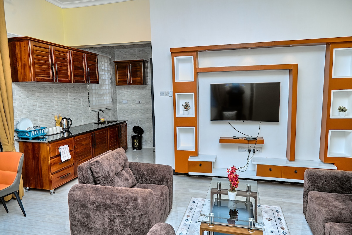 A stylish and comfortable one-bedroom apartment, we provide the ideal balance of comfort, privacy, and convenience. Amenities including: • Free Wi-Fi • Smart TV with Netflix • Fully equipped kitchen • Hot and cold water • Free parking • Self check-in for flexible arrivals • Tea utilities • 24/7 security 📍 Prime Location Located near Shoppers Plaza, Golden Folk, the Parliament, Ministries, and other key government offices, near Dodoma Airport, offering easy access for travellers.