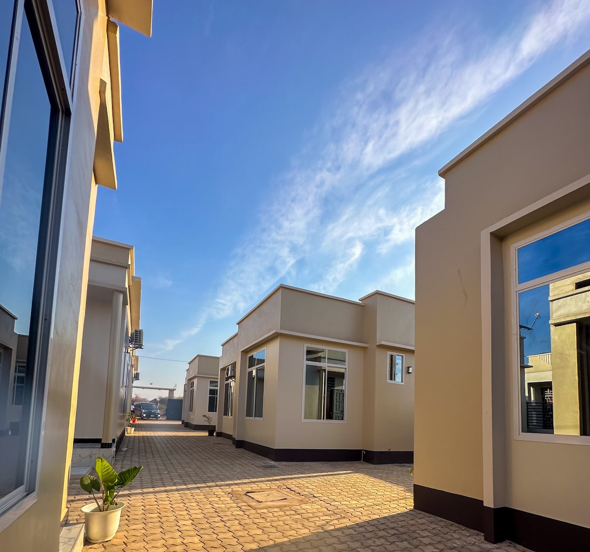 Welcome to Cool Stay Apartments in Nzuguni, Dodoma Six identical, fully furnished 2-bedroom homes designed for comfort and peace. Enjoy free breakfast, Wi-Fi, laundry, air conditioning, and daily cleaning. Relax in a modern space with Hisense TV, soundbar, and kitchen. Free pick-up, 24/7 security, and a local guide make your stay easy and unforgettable.