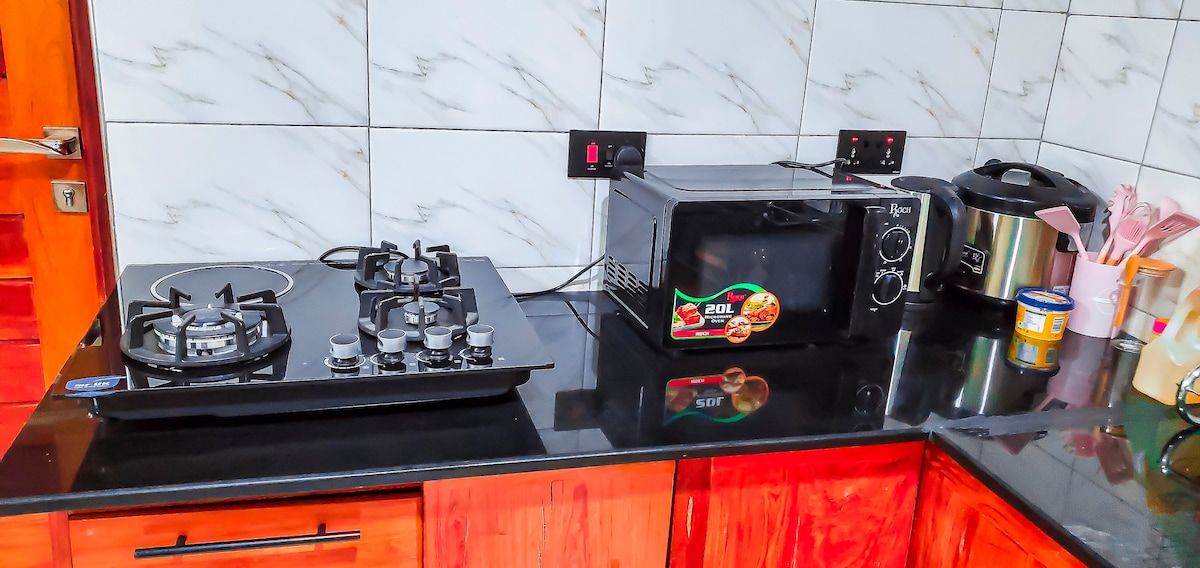 home away from home where you can feel at peace.. we are located just 2kms away from the centre town (5mins by car and 15mins walking). beautiful and peacefull neighborhood.. we have a 2 bedroom apartment. one is a master bedroom and the other is just a room. fully furnished with personal kitchen and sitting room. s A swimming pool for your relaxation.