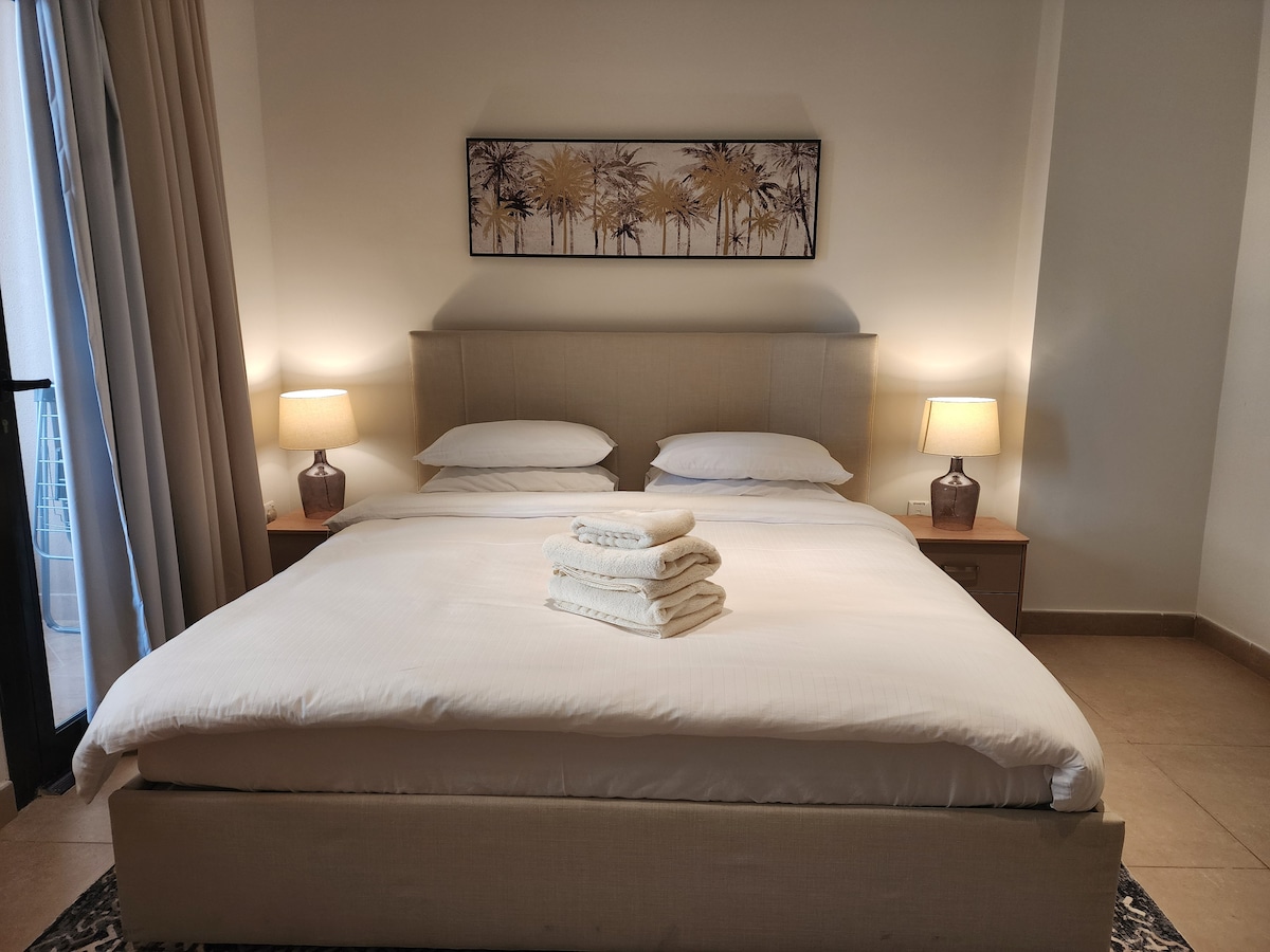 It is located on top of a Mall, where you can find 20 restaurants and more than 100 shop. Carrefour supermarket is offering you to get your trolley from the mall till your flat. Below are included: - 24/7 Security guards and concierge - Cleaning once Weekly ( for weekly stay only ) - Gym, Swimming Pool, Sauna, Steam, Tennis and kids' outdoor playing area - Hand Soap, Body soap, conditioner, Shampoo, Bed sheets, tooth brush, slippers, shaving kit and fresh Towels - Drinking water - Free WIFI