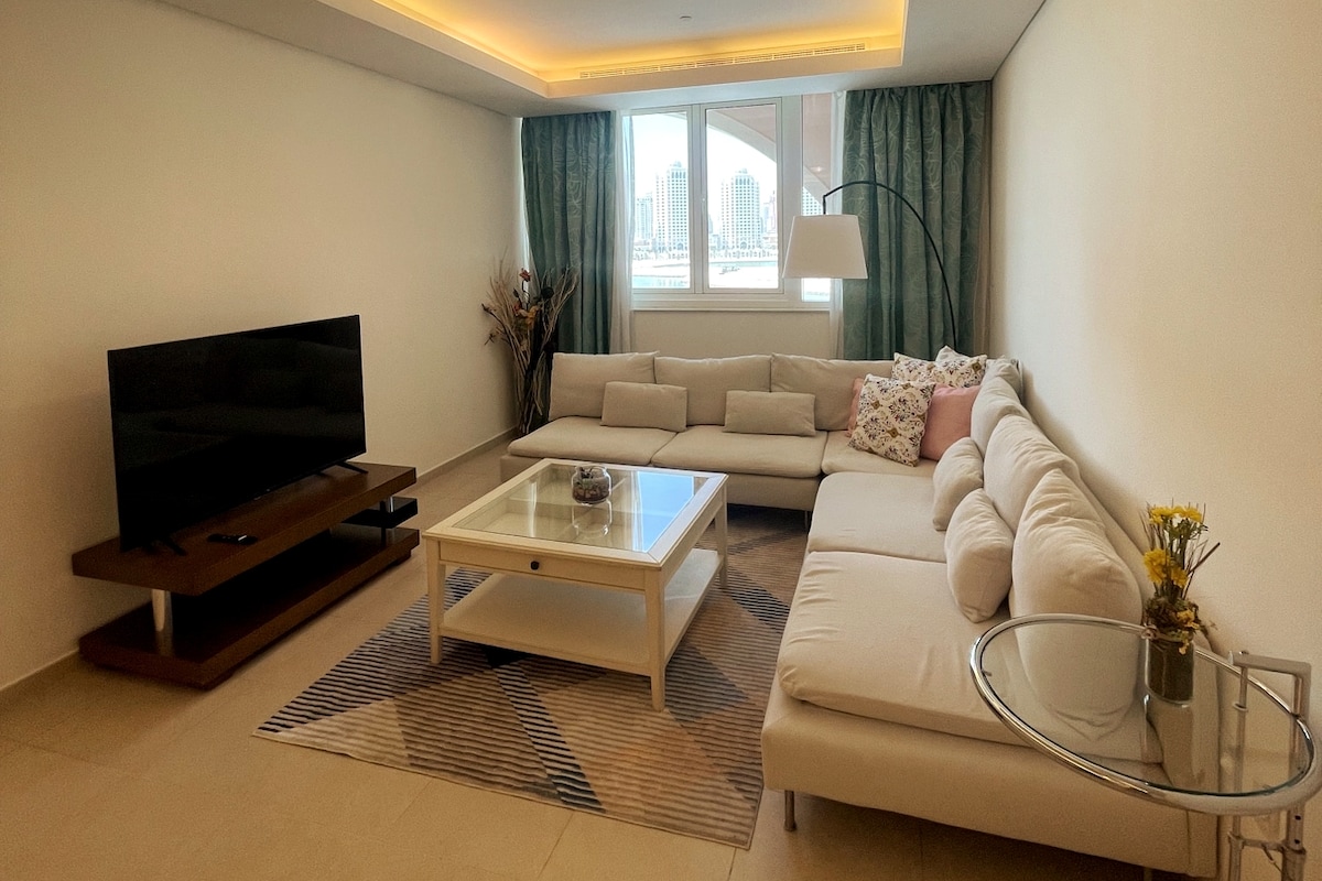 We are welcoming you with comfort and luxury in the same time . Fully renovated and fully equipped apartment with hotel amenities in The Pearl-Porto Arabia. Is located on the boulevard Piazza Arabia, providing an amazing view of the main entrance to The Pearl. -2 bedrooms (1 master bedroom)/2 full bathrooms/Bathtub/Fully equipped kitchen/Washing/dryer machine/Balcony/Wifi/Towels and toiletries/Designated parking/visitors parking. Let us help you with your HAYYA visa !