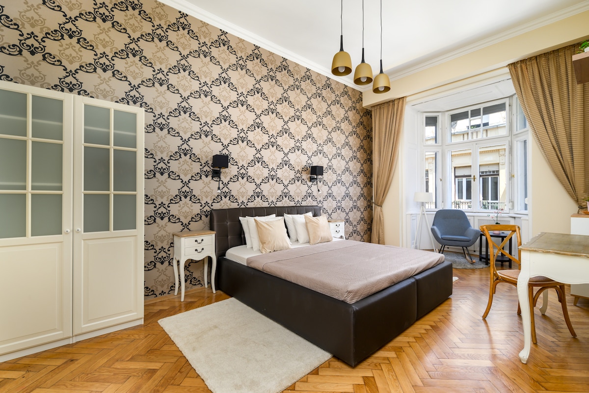 What could I say?! ●NEWLY renovated, bright, designer apartment with SAUNA+AIRCON ●UNBEATABLE Location-In the heart of the city❤️ ●PRIVATE SPA in the building-for additional charge ●DIRECT AIRPORT BUS(100E) stop: 1 min✈ ●SECURED car park: 3 mins ●LUGGAGE Storage:4 mins ●ELEVATOR ●MIRROR on the ceiling above the Queen-size bed ●SAFE&CLASSY Building in a classical district of Budapest ●HIGHSpeed WiFi ●AROUND the best cafés, bars, restaurants -Here you can feel like a real resident of Budapest :)