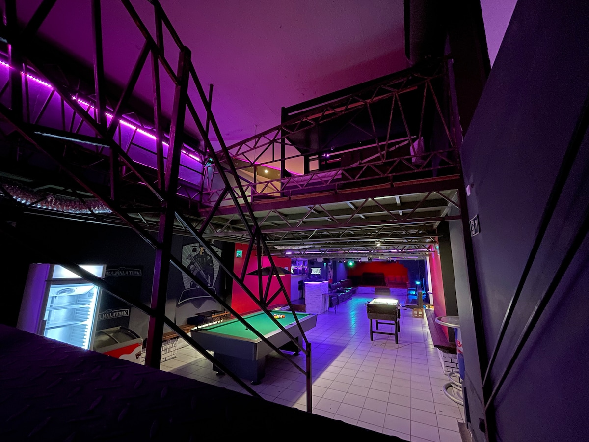 up to 18 person Perfect space for group stay, beer tap, pool table, tablesoccer, darts, ice machines, own bar, no an other group at the same time, the whole property is just for you. no staff, self check in, self get in, self check out, smart home system, up to 18 person, single bunks for all. buy the drinks/food in the supermarket and serve yourself. I can help you to order keg from the factory.