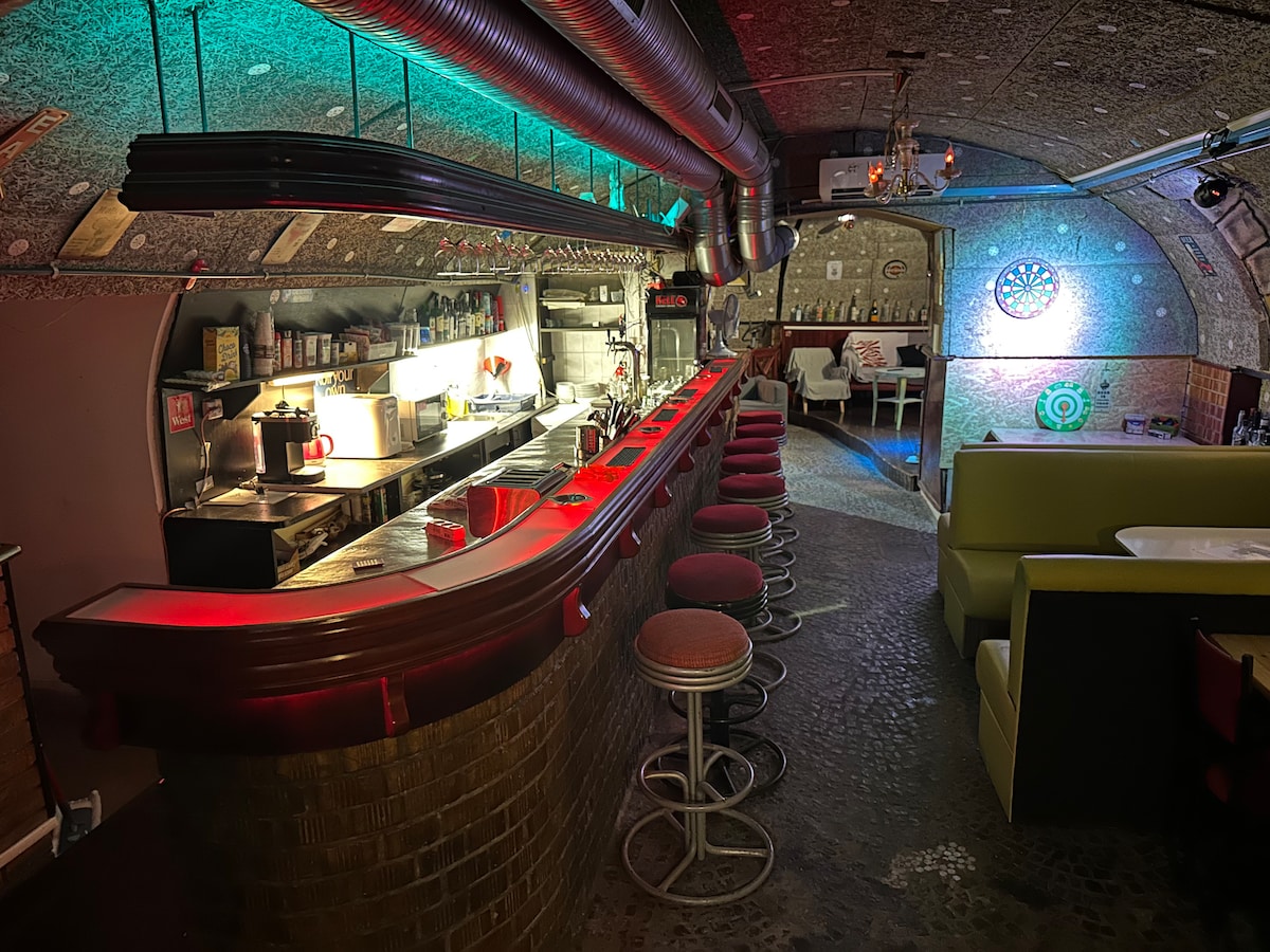 前酒吧、台球桌、飞镖、啤酒桶、酒吧22p