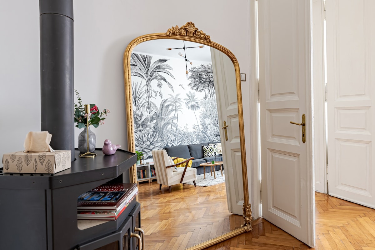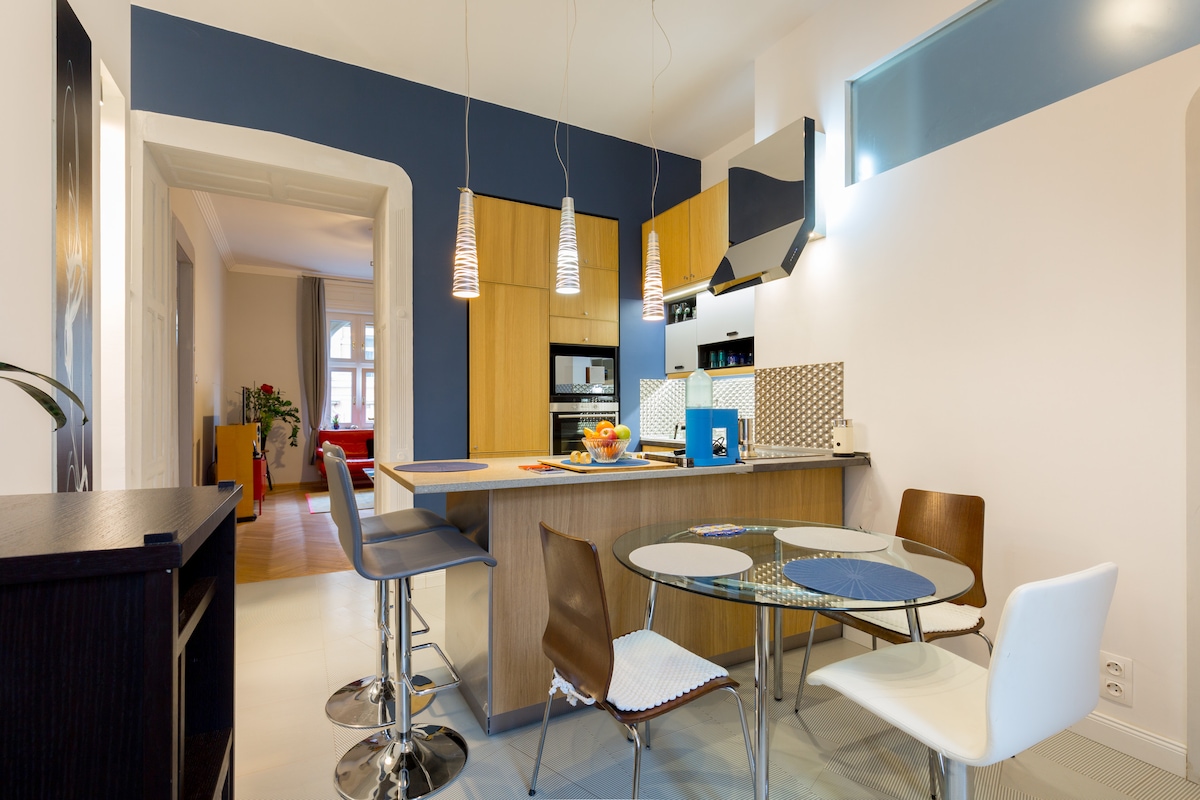Welcome to my stylish, newly renovated spacious apartment in the middle of the Jewish District. Ideal choice if you would like to stay in the bustling downtown while still in a peaceful and a calm place. Central location with excellent transportation within the city ; Bus 100E - direct public transportation from the Airport is within some minutes proximity also.