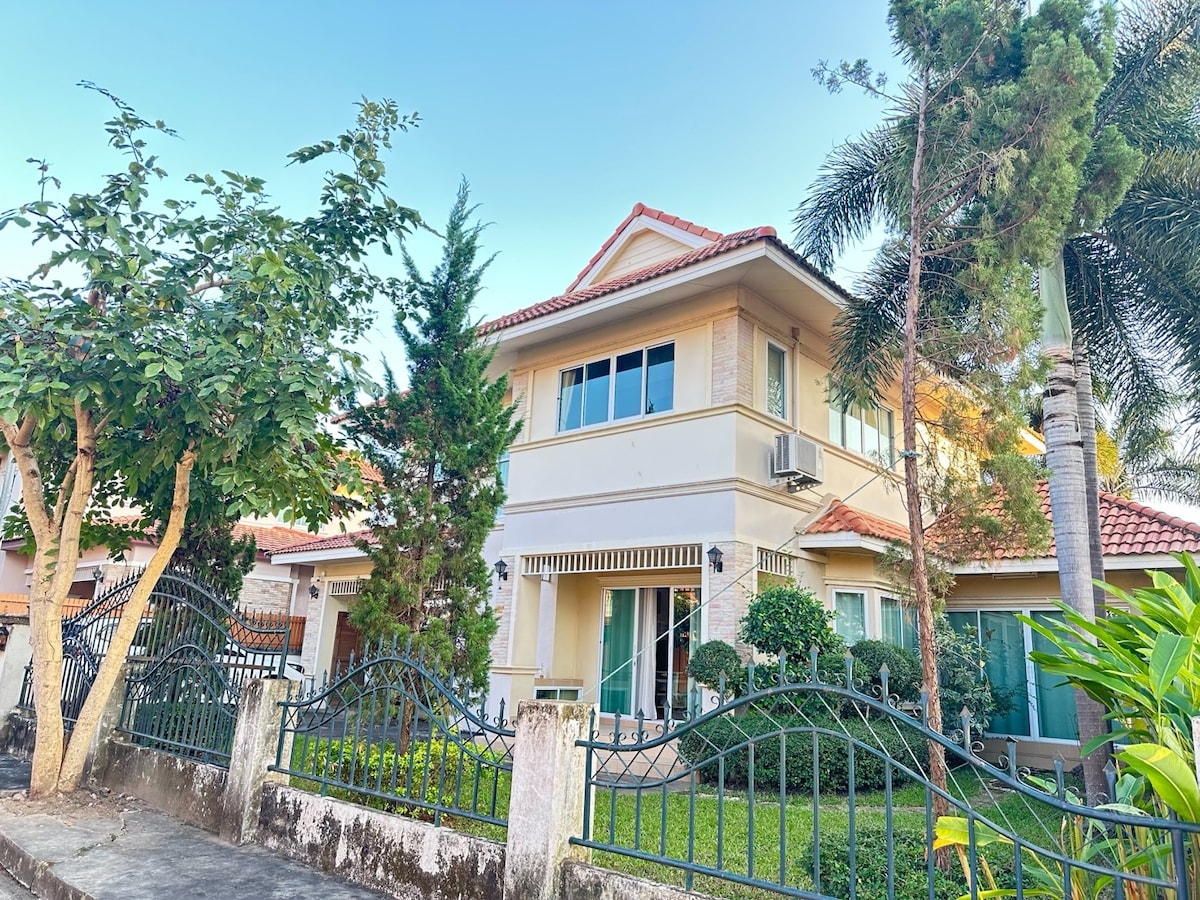 Welcome to our serene suburban retreat in Chiang Mai! Located just 15-30 minutes from the city's attractions, our modern 3-bedroom home is perfect for families or groups of up to 7. Enjoy access to two shared community pools, a large park with playground toys and a basketball court, and a fully equipped kitchen for your convenience. If you’re traveling with kids, let us know in advance, and we’ll gladly provide extra items to make your stay comfortable and memorable. Book your getaway today!