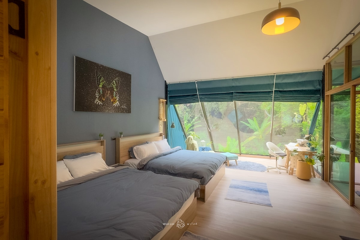Find this ideal for Slow-life Getaway! Exquisitely designed to blend into nature & embrace natural ambiance 🏞️ Smog/AIR POLLUTION-FREE tourism 🍃✨ Staying in this beautiful place which hangs over a magnificent waterfall is one experience you won't be bound to forget. Relax in the rustic, uplifting, magical, and inspiring environment while the stars and moon swirl overhead, allowing you to see another beautiful side of Chiang Mai without the chaos of the touristy places.