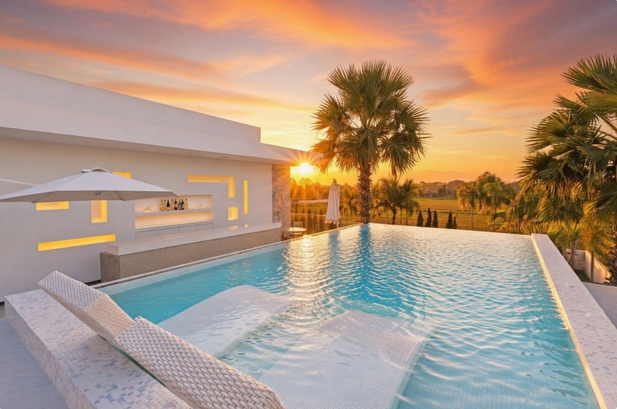 Experience the epitome of luxury living at Palm Villa - winner of the prestigious 'Best Villa Architecture Design Chiang Mai 2022' award! Nestled amidst serene rice-fields with majestic mountain views, our modern villa promises an unparalleled 5-star resort-style stay. Indulge in ultimate privacy, relaxation, and adventure - all under one roof. Escape to Palm Villa and discover a world of unparalleled luxury that is unlike any other villa in Chiang Mai.