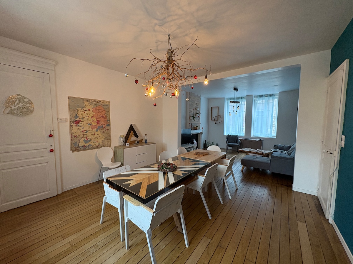 Bienvenue dans cette maison de maître chaleureuse et idéalement située en bord de Meuse dans le centre de Vireux Molhain, où le confort et la tranquillité se rencontrent. Nous vous proposons cette spacieuse maison entièrement meublée avec goût, idéalement située à 5 min du Parc National de l'Entre Sambre et Meuse, 10 min de Givet, 25 min de Dinant. Les 4 chambres sont aménagées avec soin. Vous y trouverez une literie neuve et une décoration apaisante créent une atmosphère propice à la détente.
