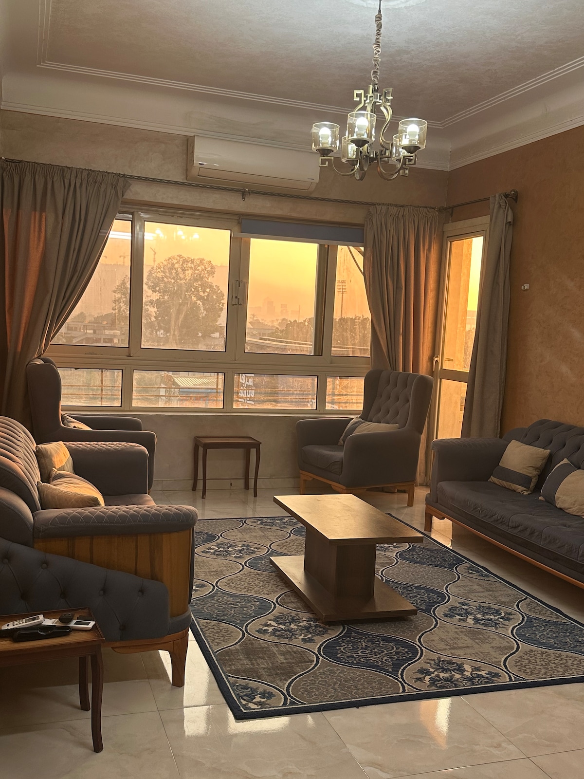 شقه مناسبه للشباب والعوائل فرش فندقي ساوند سيستم اول سكن ٢ حمام غرفه سويت بدريسنج وغرفة شباب ٢ شاشه مكيف بالكامل تكييفات جديده سخانات اريستون بالحمامات جميع الاجهزه جديده بالقرب من النيل وجميع المواصلات والفنادق