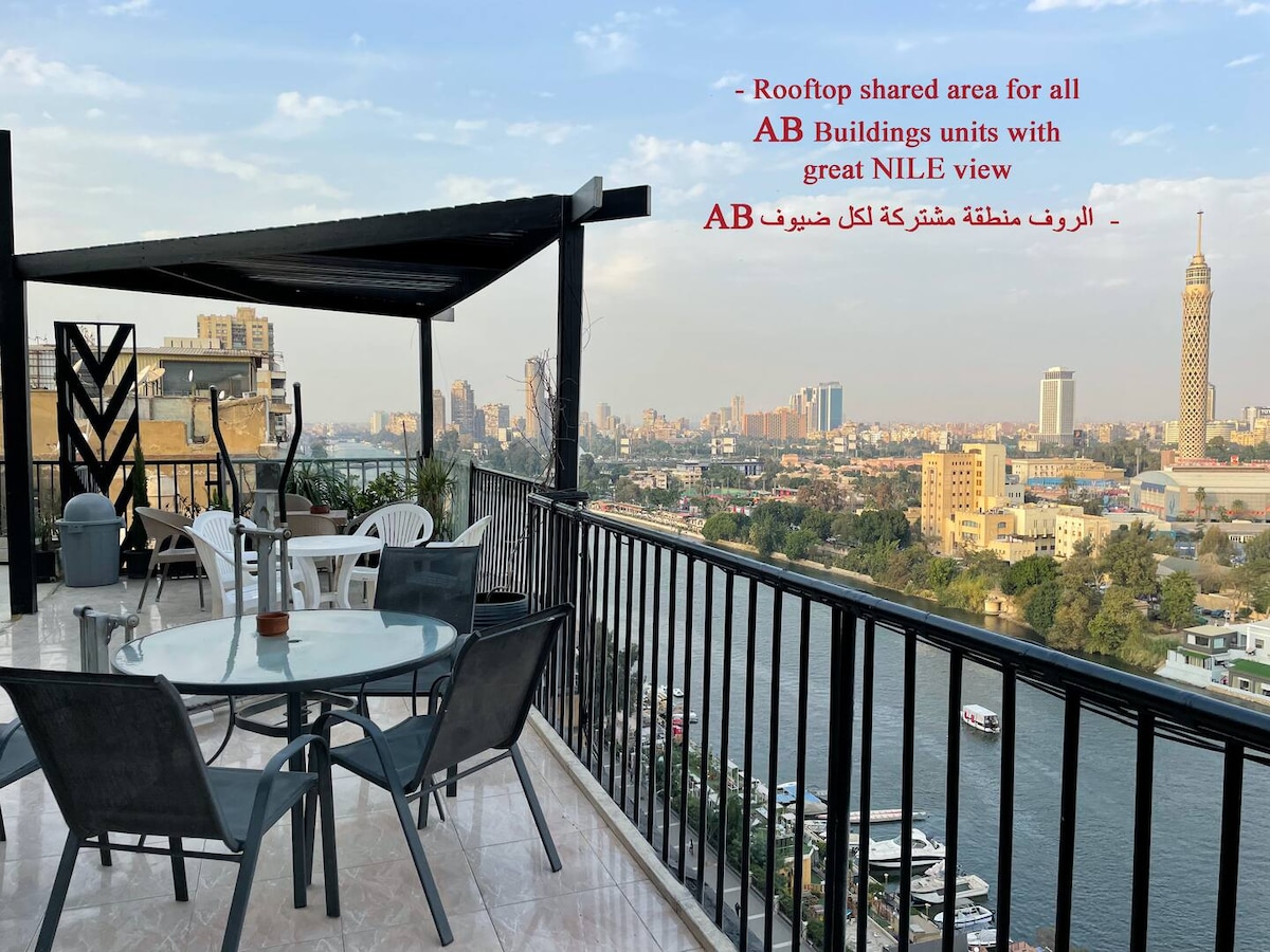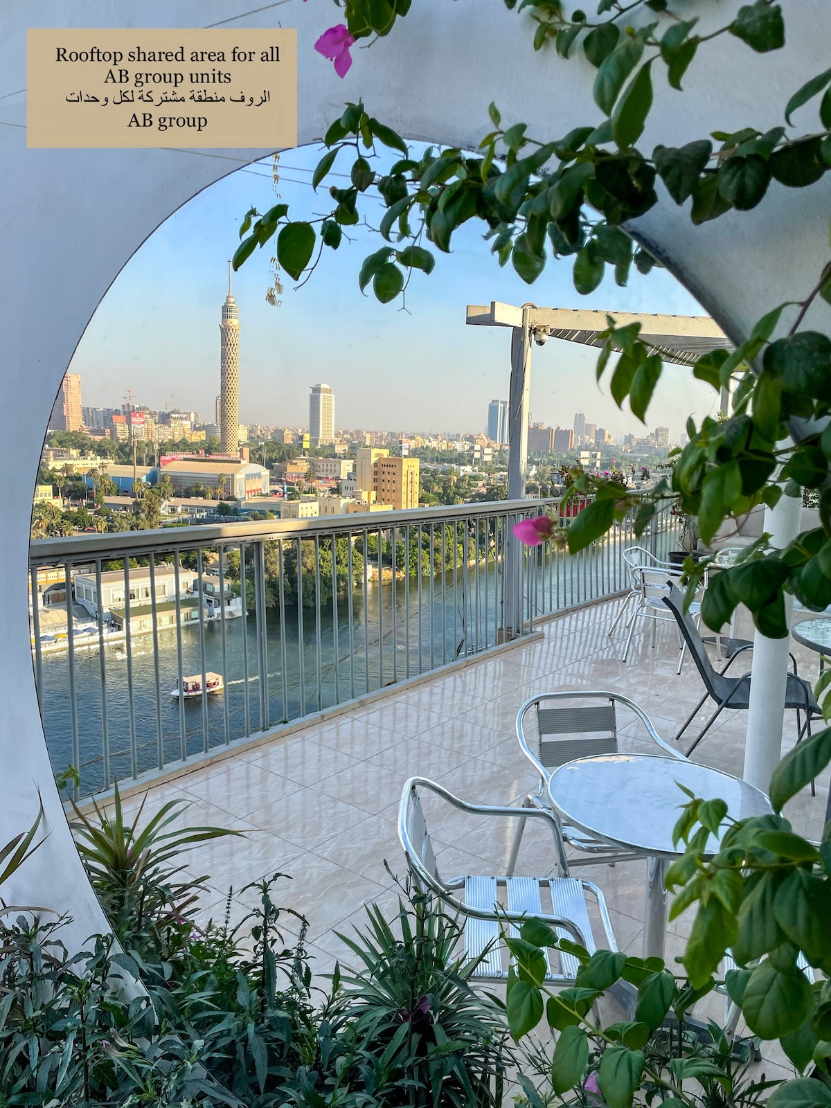 ((Kindly check our HOUSE RULES before booking)) The studio number is “AB - N1009” Above the 10th floor you will have to climb 2 and a half floors after the elevator from the 8th floor... A unique AB studio with jacuzzi, this unit is located on the rooftop with a stunning view of the Nile River and Cairo city. Our location will ease your stay in Cairo as we are 10 minutes from the city center and the Egyptian Museum and 30 minutes from the Great Pyramids of Giza
