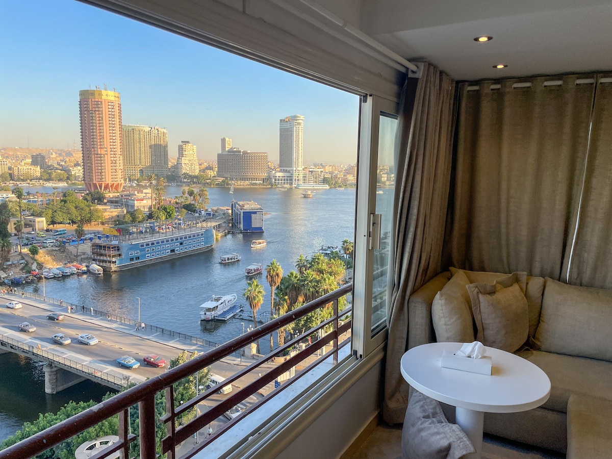 Stay in a breathtaking Nile River view studio in the heart of Egypt! Panoramic views from floor-to-ceiling windows and a chic, contemporary interior make this the perfect place to relax and unwind. Located near famous attractions such as the Pyramids, Sphinx, and Egyptian Museum and surrounded by top-rated hotels like Four Seasons and Fairmont Nile City. Book now for a luxurious and unforgettable stay.