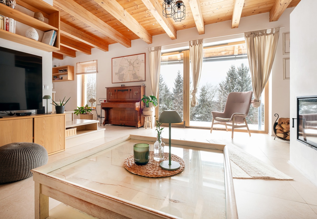 We offer a stay in a cozy traditional log house in peace and privacy. The house has lovely views and is located near forest and National Park. The living room has fireplace, kitchen and bathroom are fully equipped. Two bedrooms are in the second floor. Heating is provided by electricity or the fireplace. Unlimited WiFi with a speed of approximately 28 Mbps. The ceilings in the first floor are low, please be careful not to hit your head!